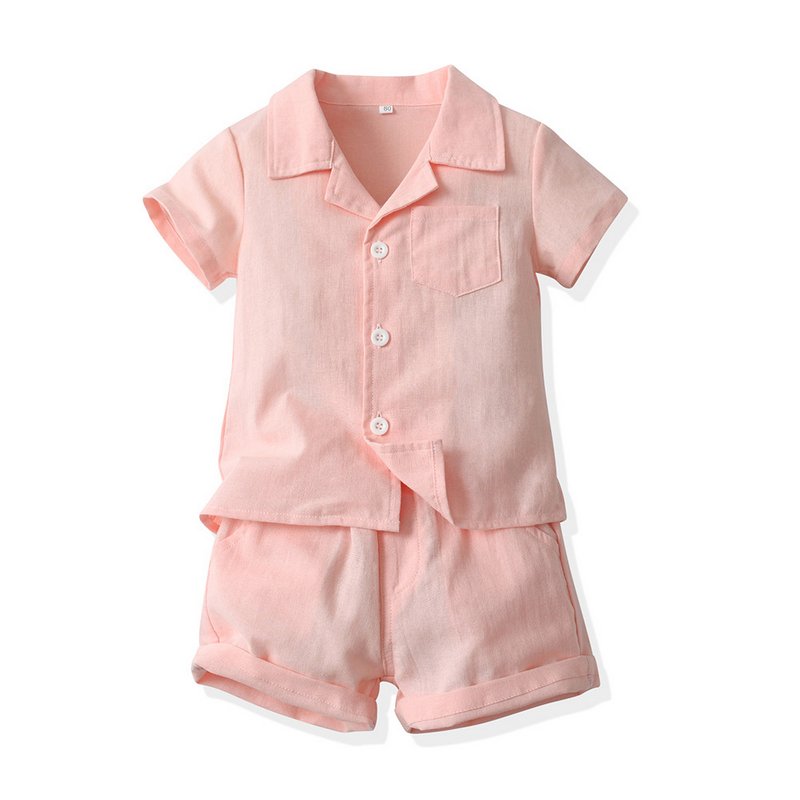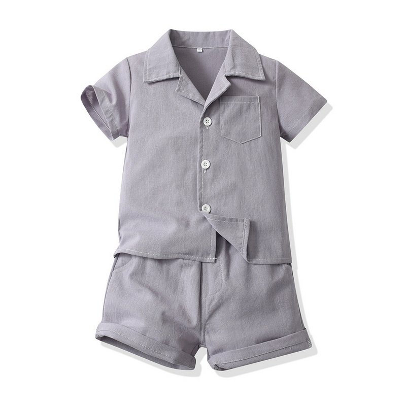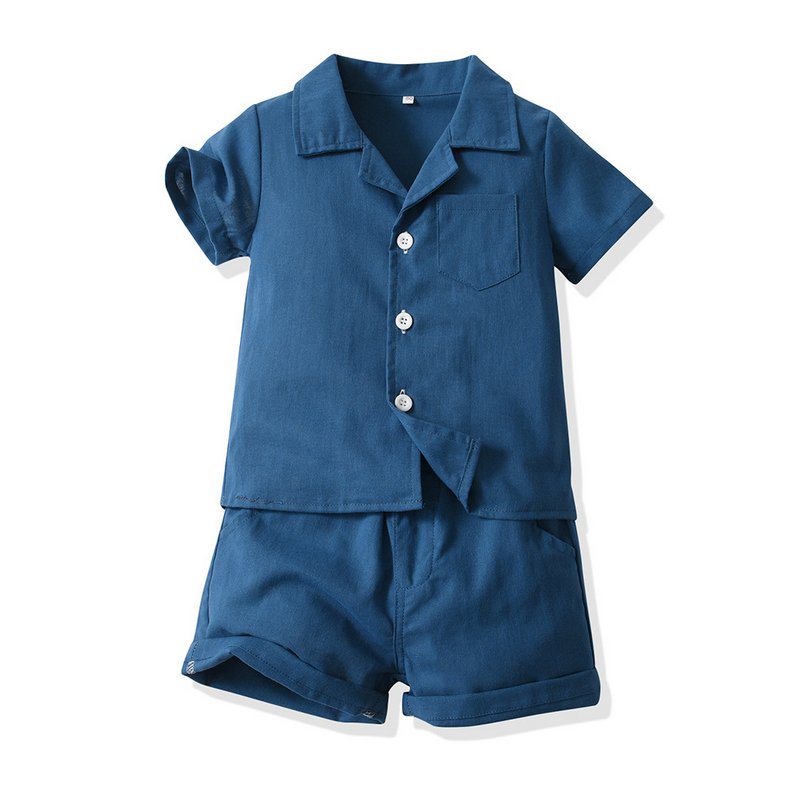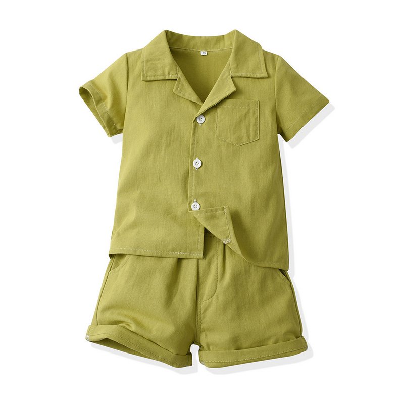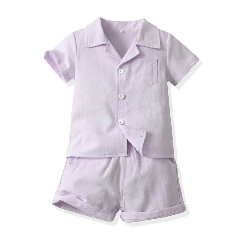 Boys Fashion Solid Color Short-Sleeved Shirt Two-Piece Set