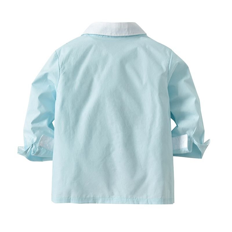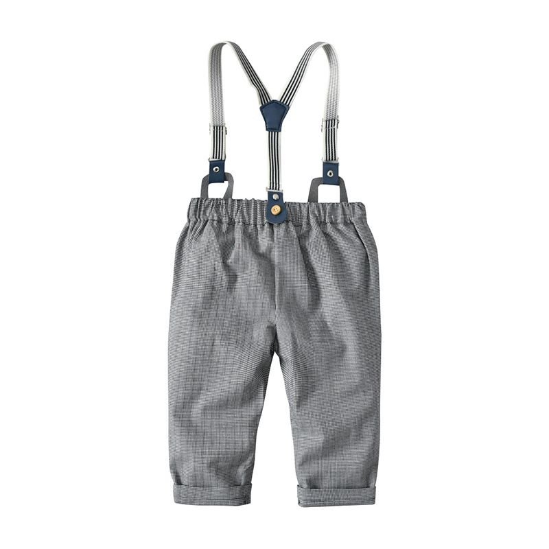 Boys Little Gentlemen Cotton Solid Color Long Sleeves Shirts And Gray Pants With Suspender Set