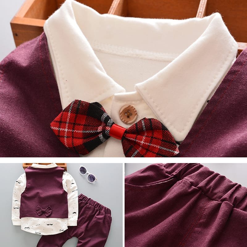 Boys Moustache Pattern Lapel Shirt Single-breasted Vest And Pants Set