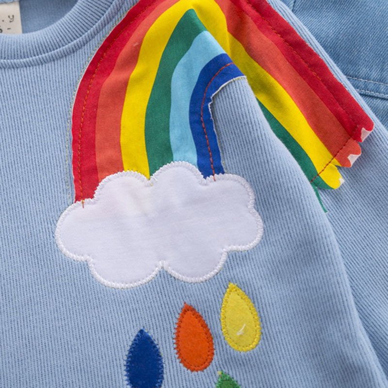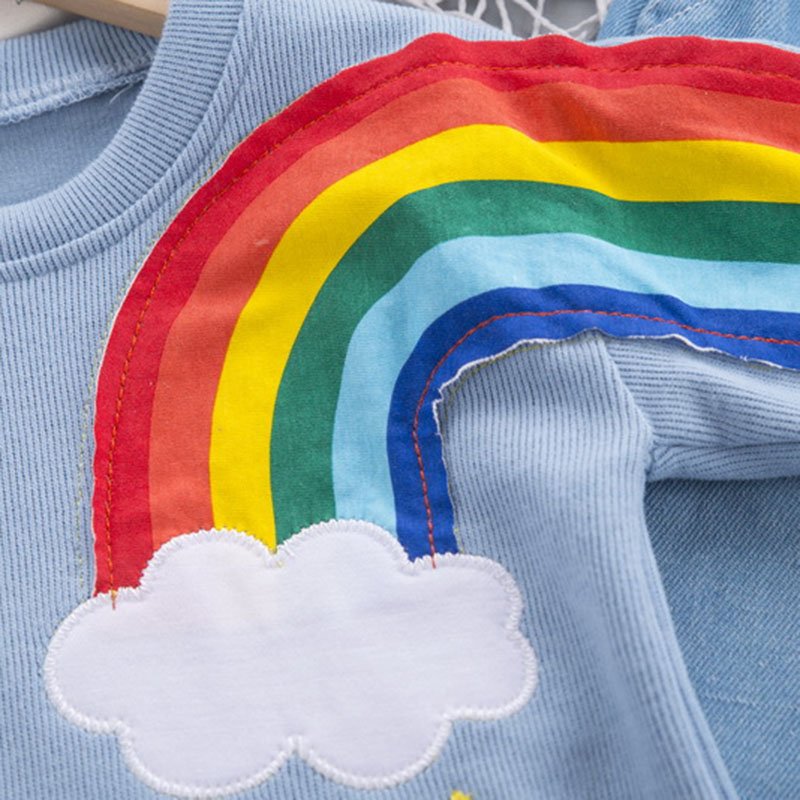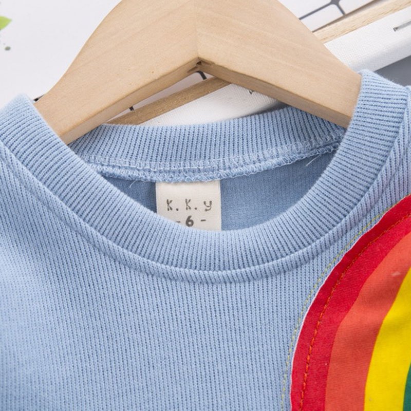 Boys Rainbow Pattern Round Neck Tops And Pants Two-piece Set