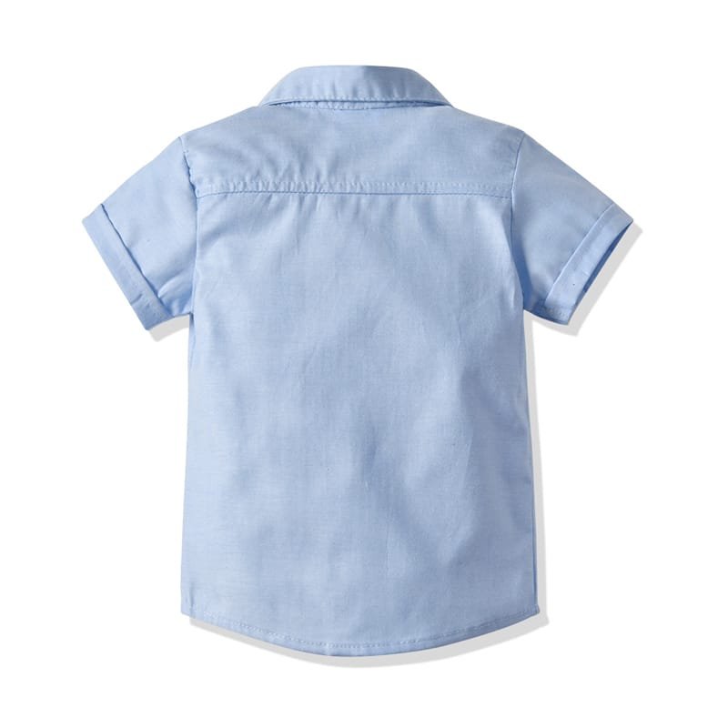 Boys Short-sleeves Single-breasted Shirt And Suspender Trousers With Bow Tie