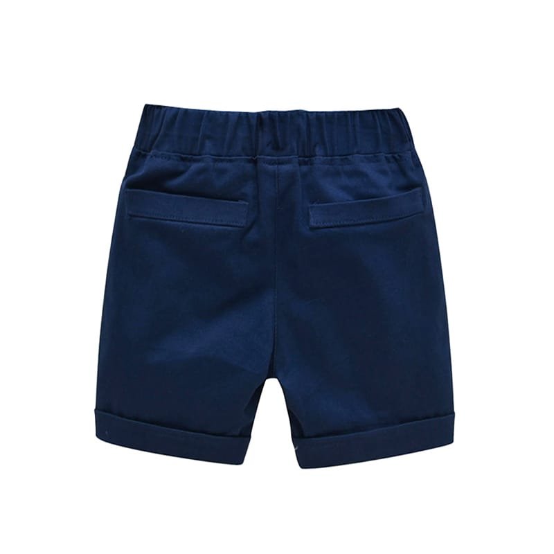 Boys Short-sleeves Single-breasted Shirt And Suspender Trousers With Bow Tie