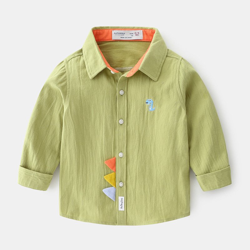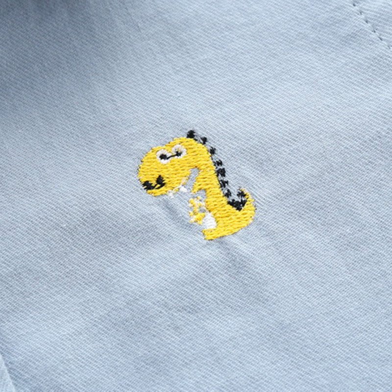 Boys Simple Dinosaur Embroidery Lapel Shirt