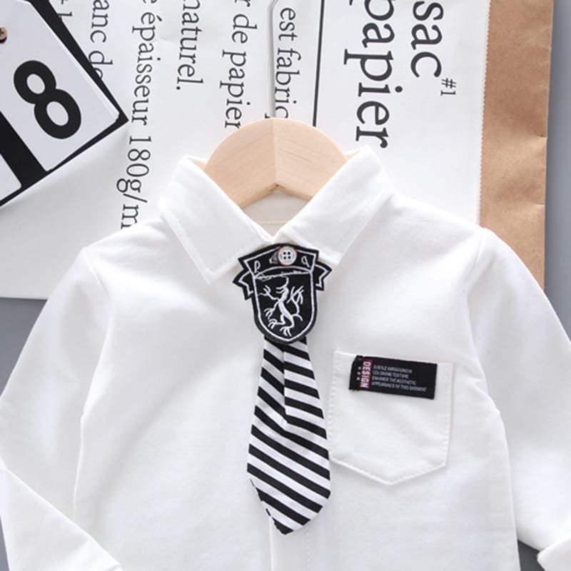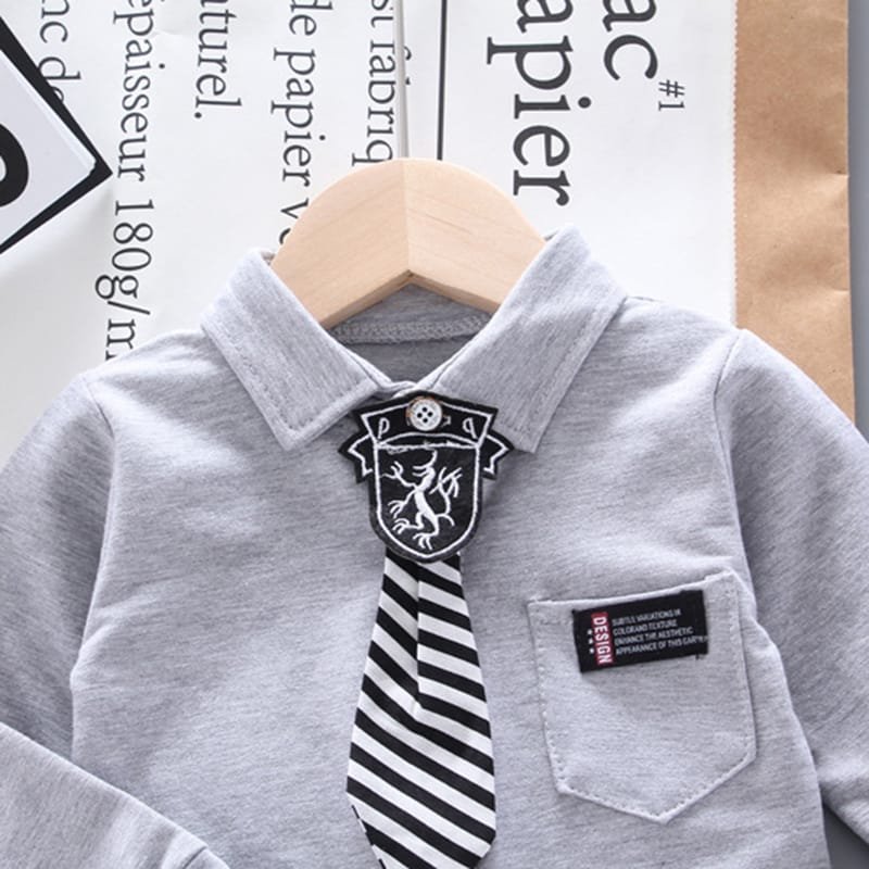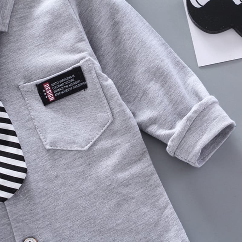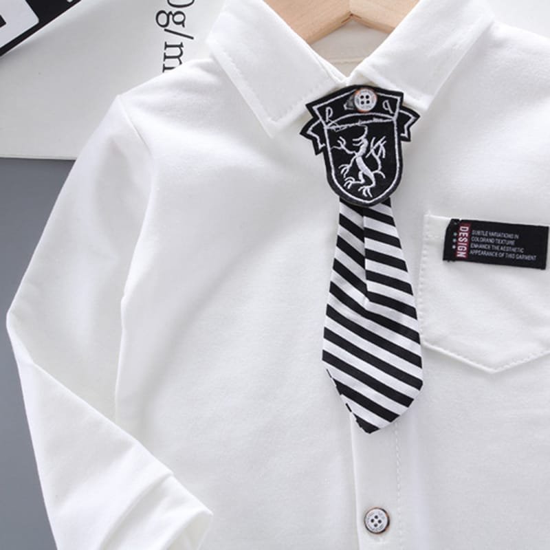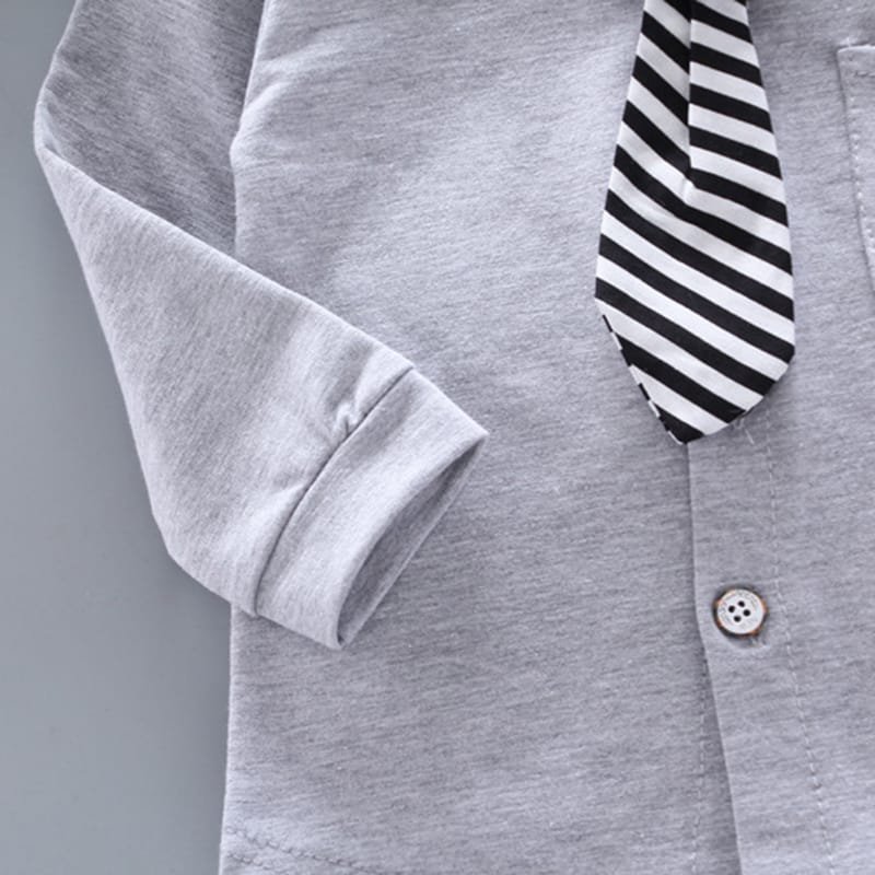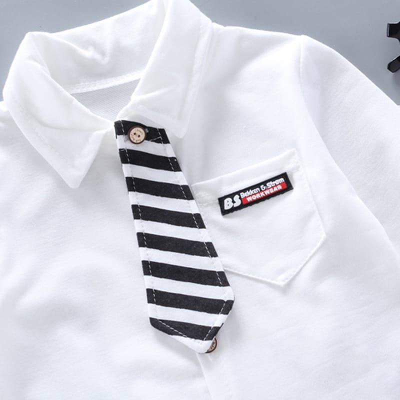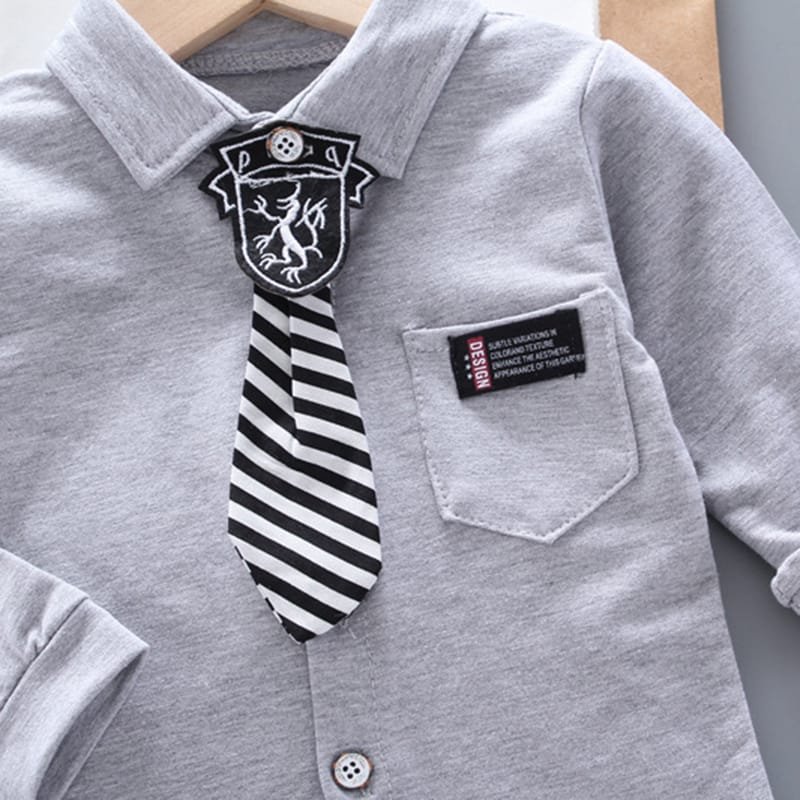 Boys Single-breasted Lapel Design Shirt And Plaid Pants Set