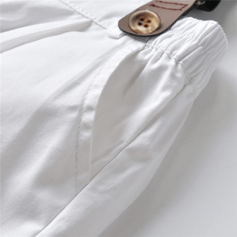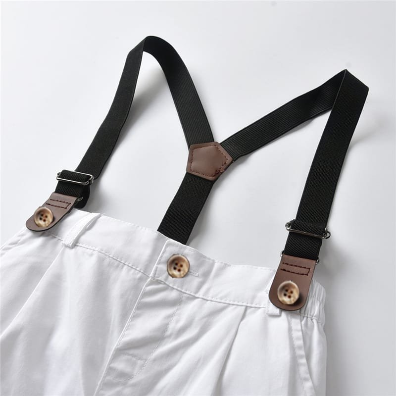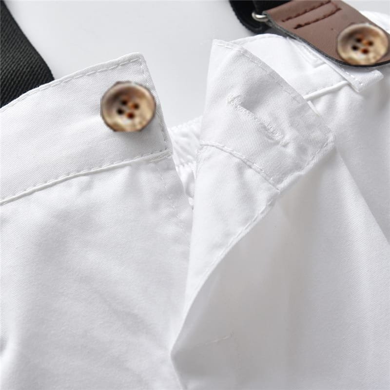 Boys Single-breasted Shirt And Suspender Trousers With Bow Tie Set