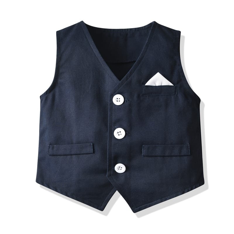 Boys Single-breasted Shirt Sleeveless Vest And Pants With Bow Tie Set