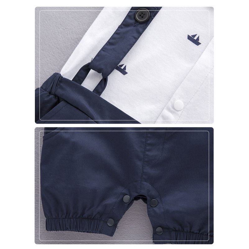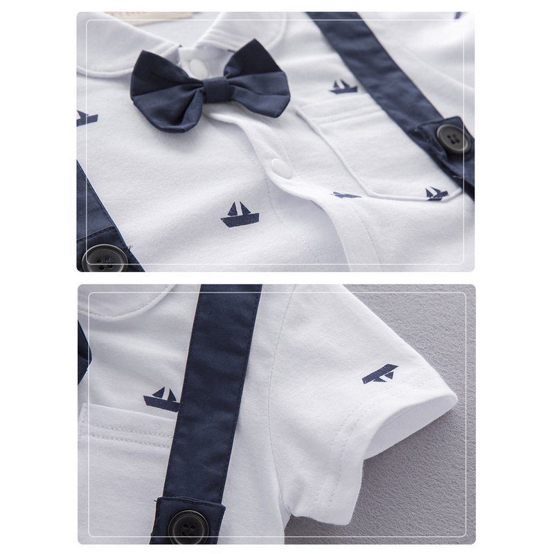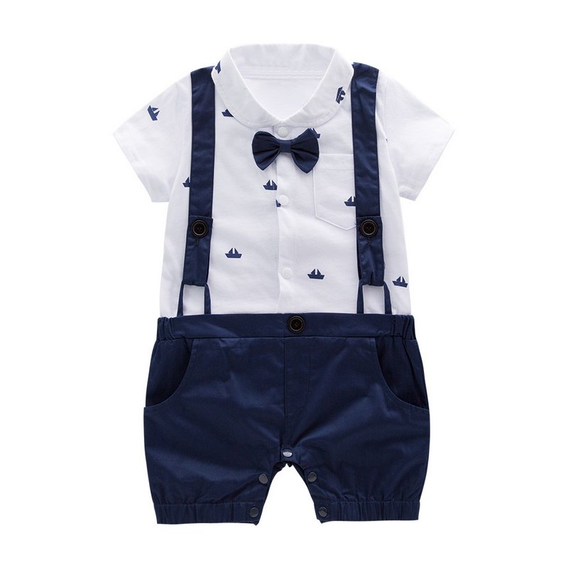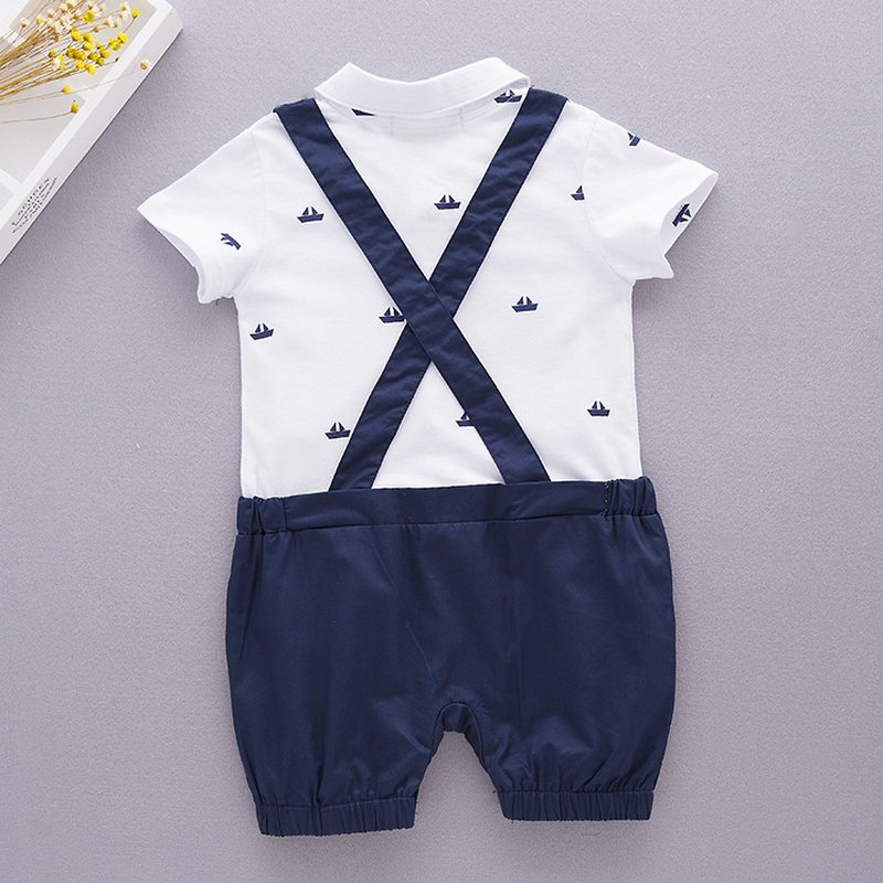 Boys Summer Boat Pattern Short-sleeved Rompers And Strappy Pants Set