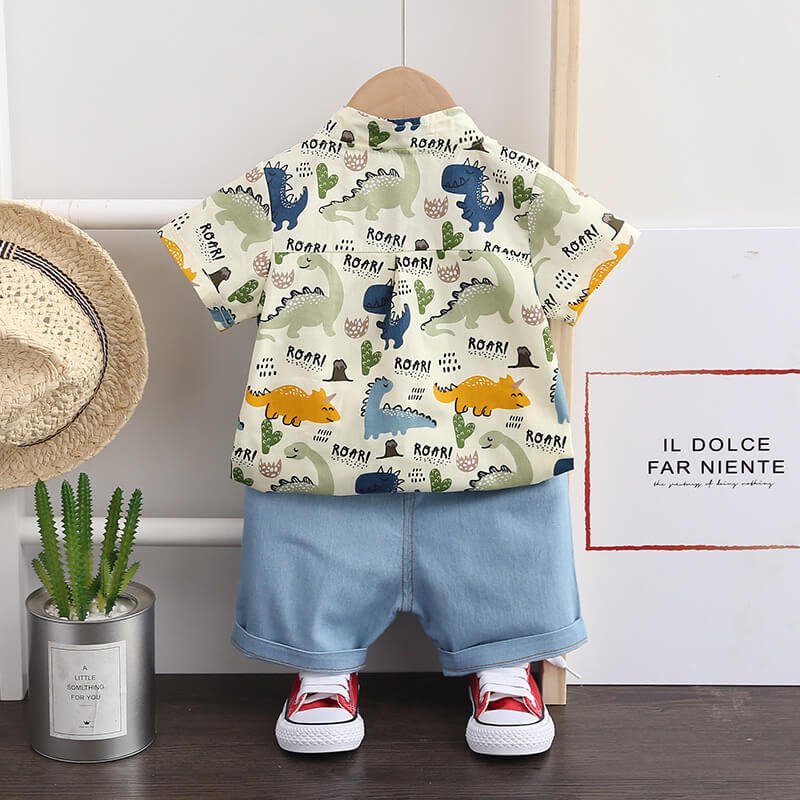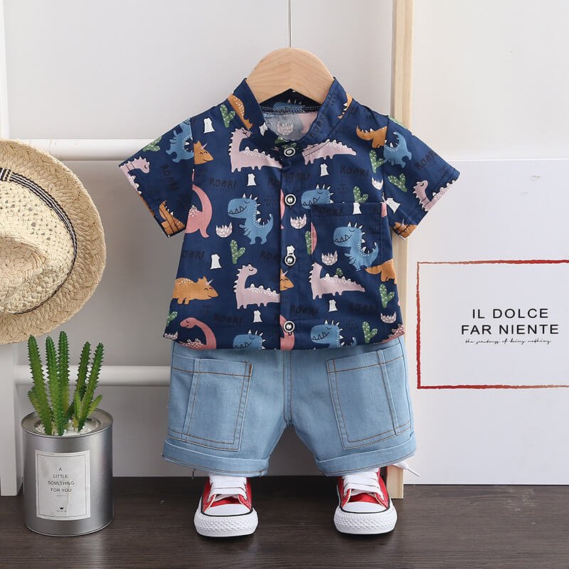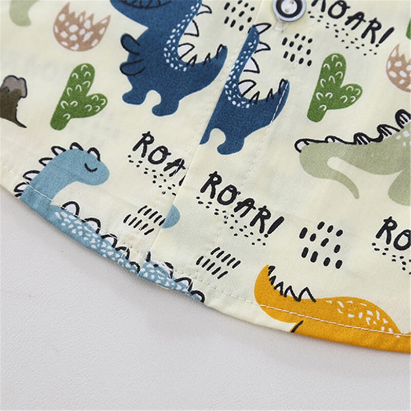 Cartoon Printing Short Sleeve Shirt And Solid Color Shorts Set