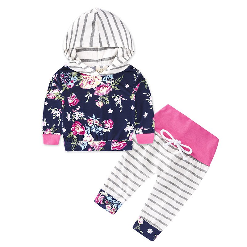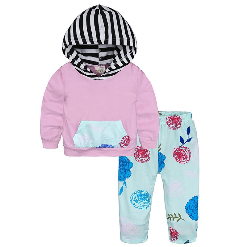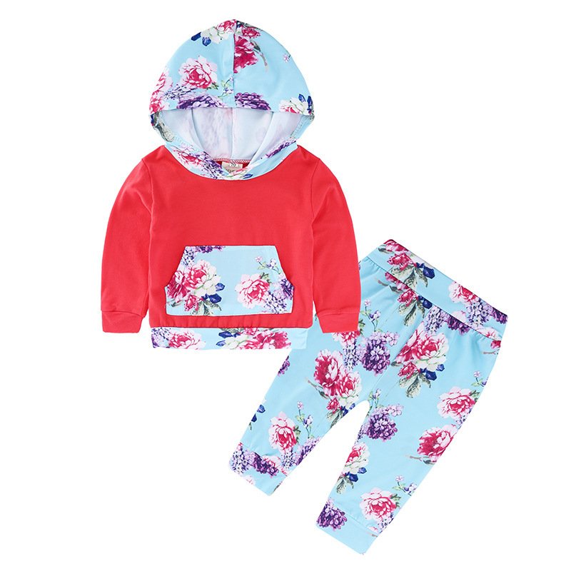 Children Autumn Flower Printed Hoodies And Trousers Set