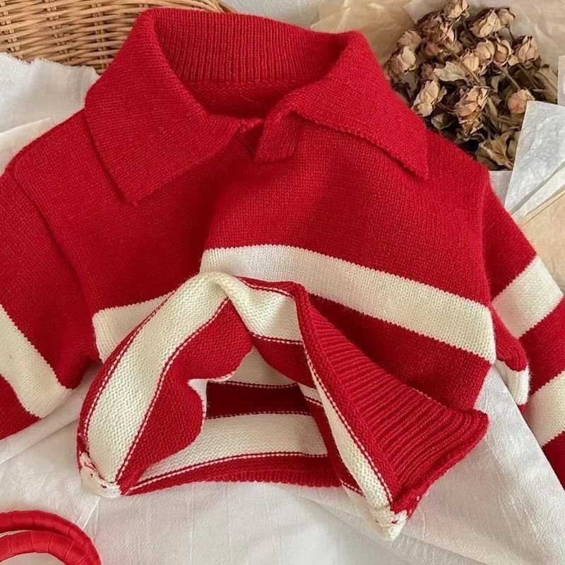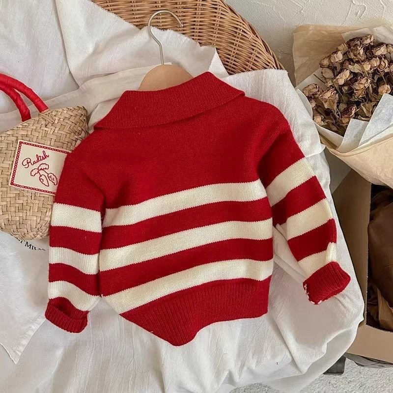 Children Fashion Casual Autumn And Winter Stripe Lapel Long-Sleeve Knitwear