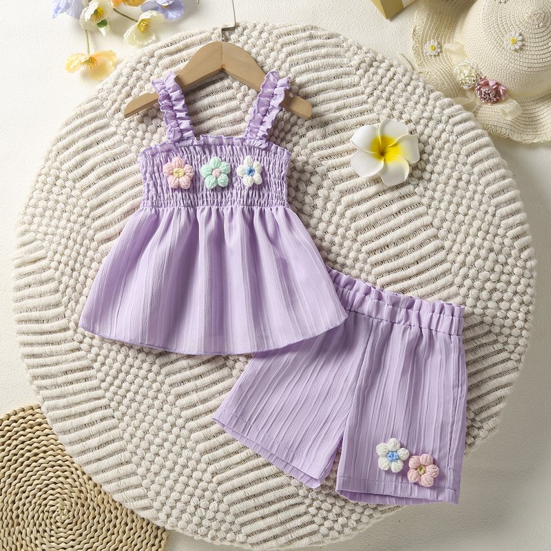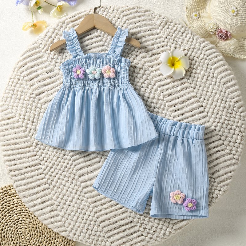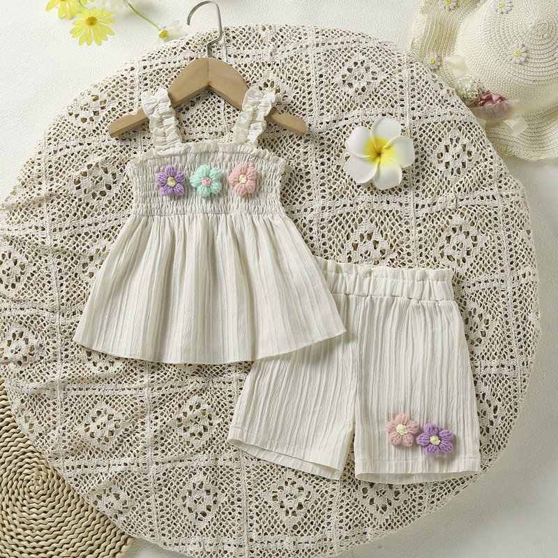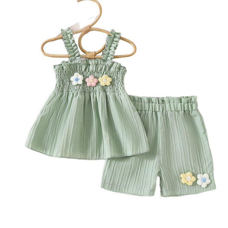 Children Fashion Floral Strap Top And Shorts Two-Piece Set