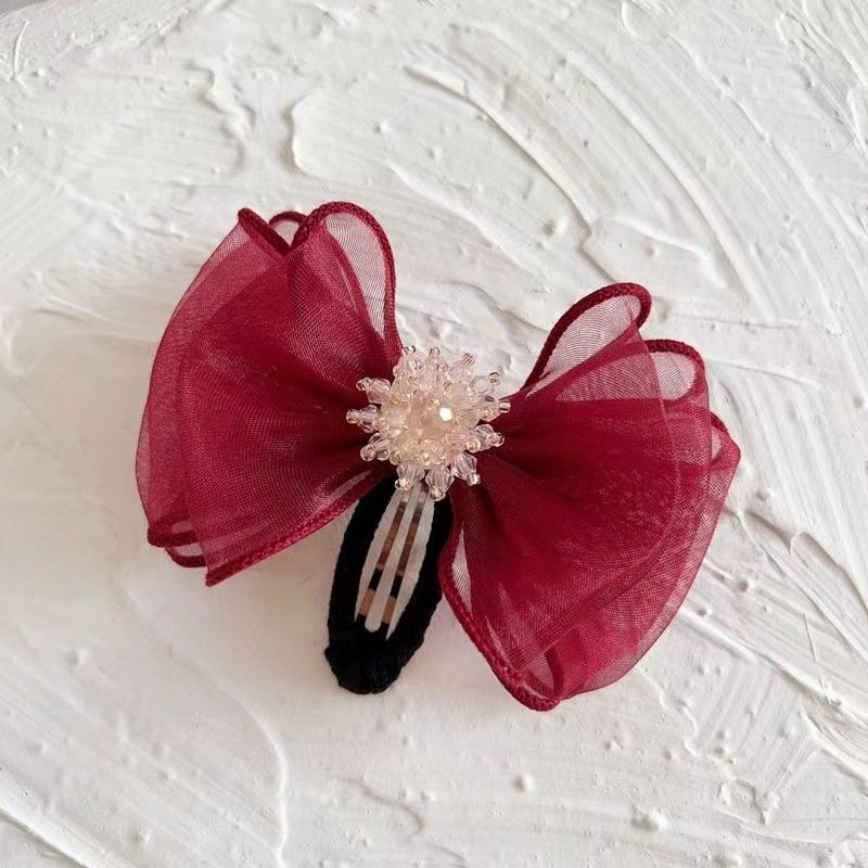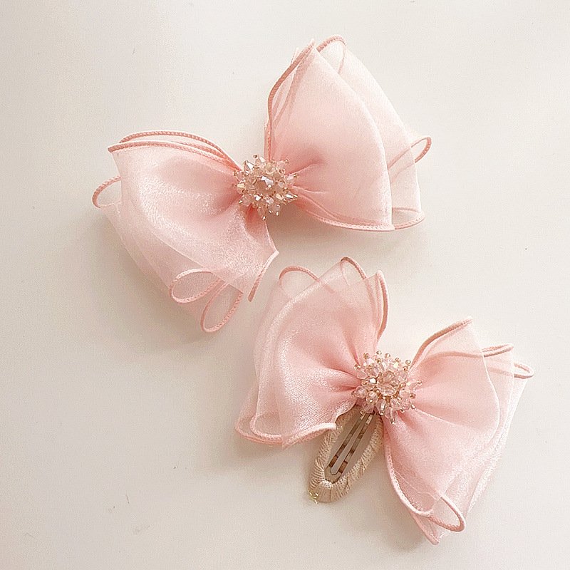 Children Fashion Gauze Bow Rhinestone Hair Accessories