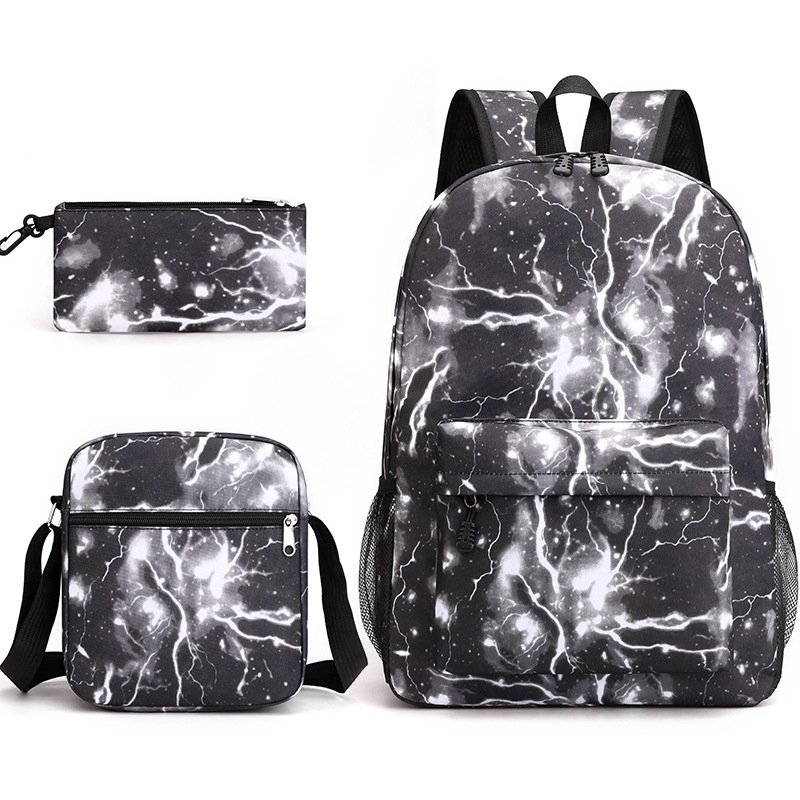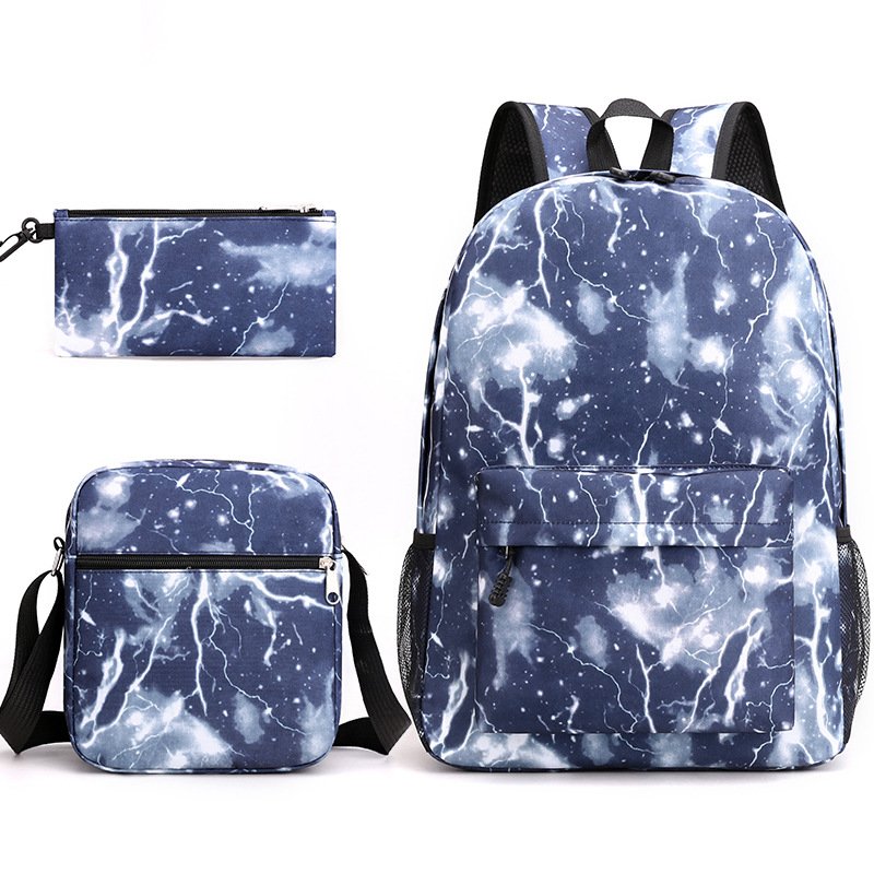 Children Fashion Girls Boys Color Matching Starry Sky Canvas 3-Piece Backpack School Bag