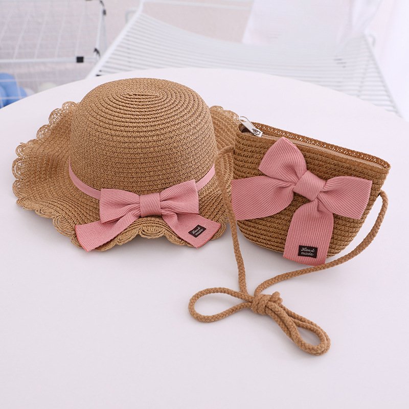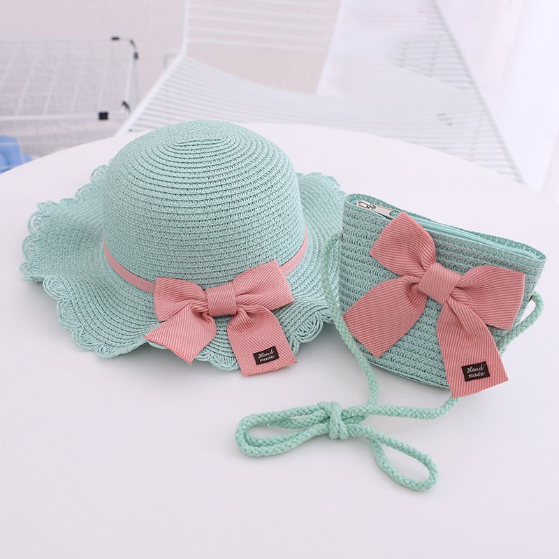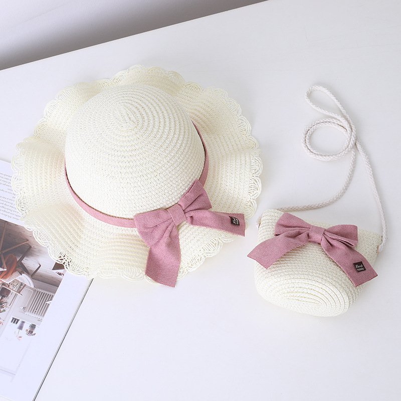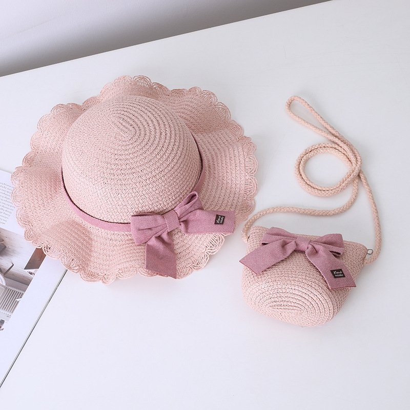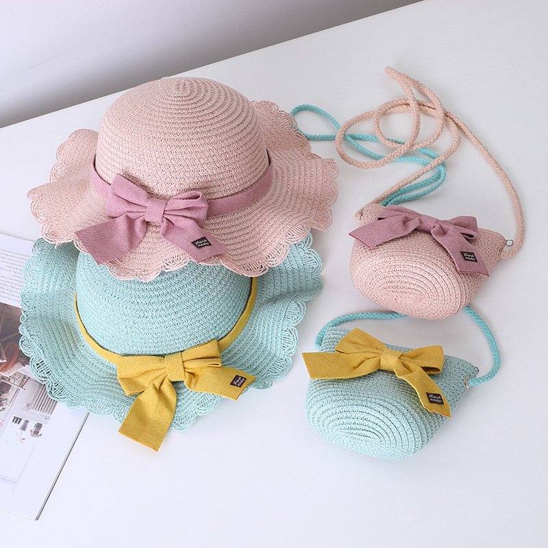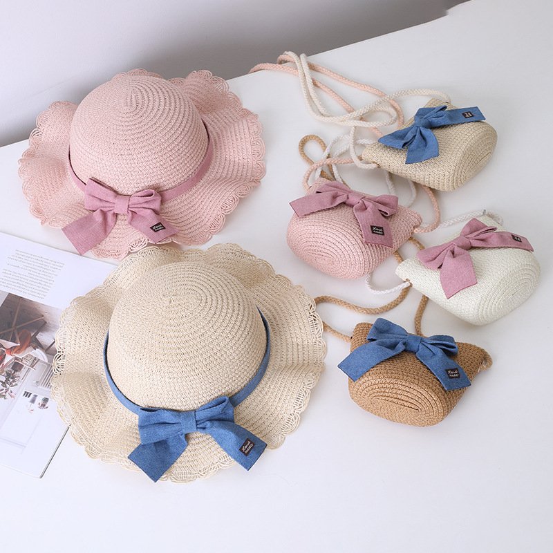 Children Kids Baby Fashion Bow Straw Hat Crossbody Bag