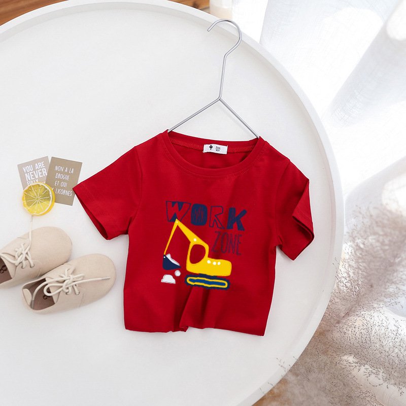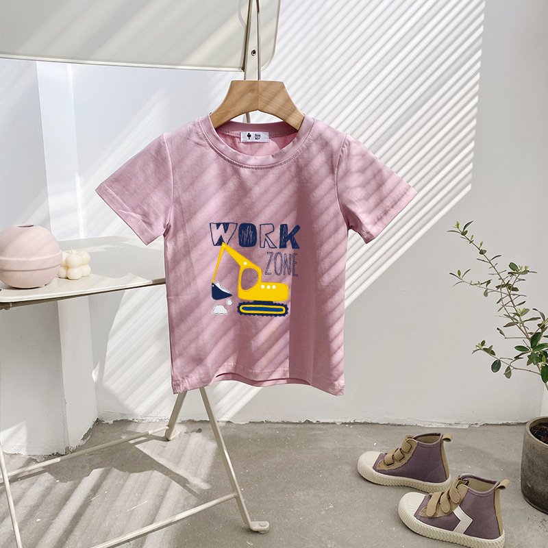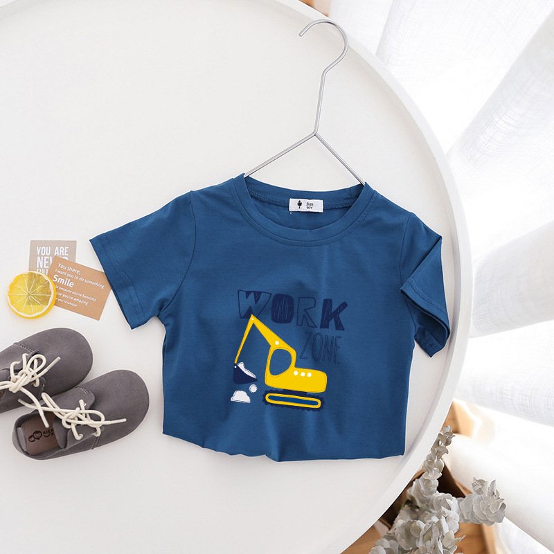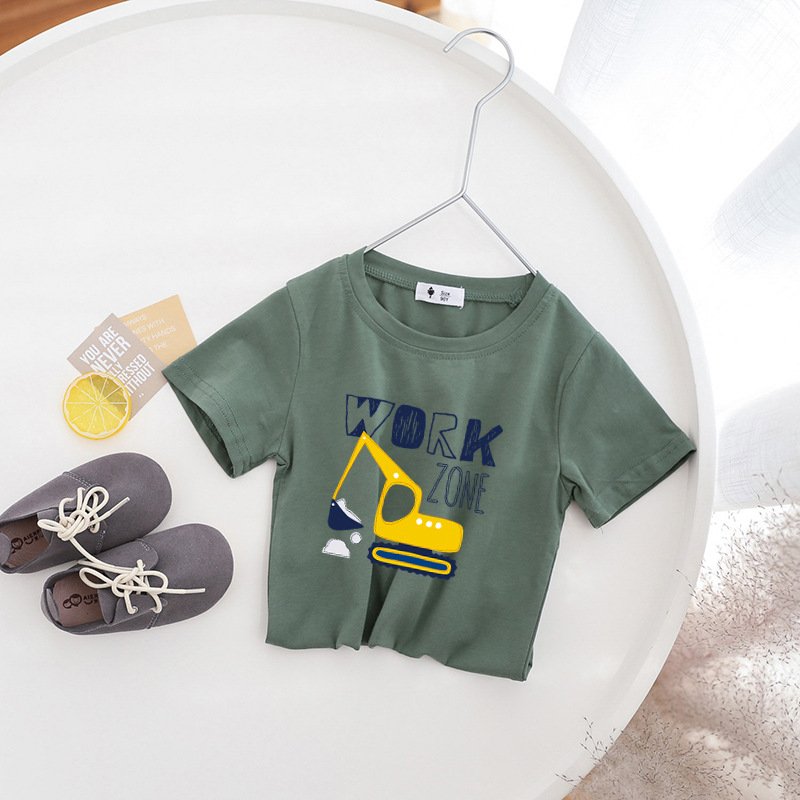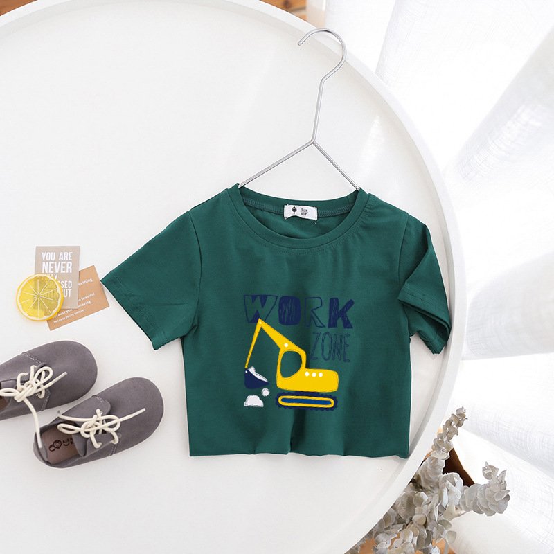 Children Kids Baby Fashion Boys Casual Basic Excavator Print Short Sleeve Round Neck T-Shirt