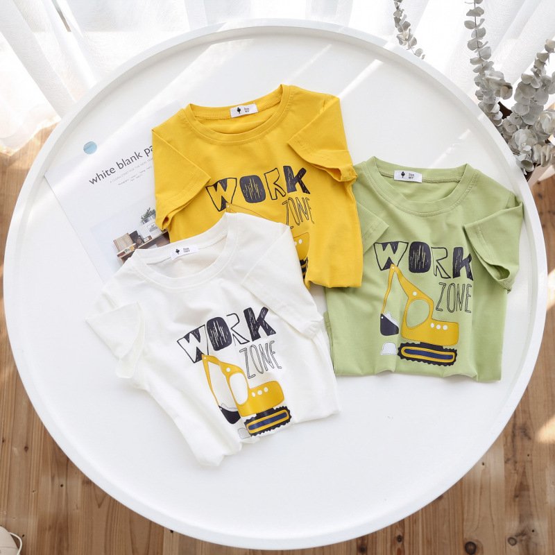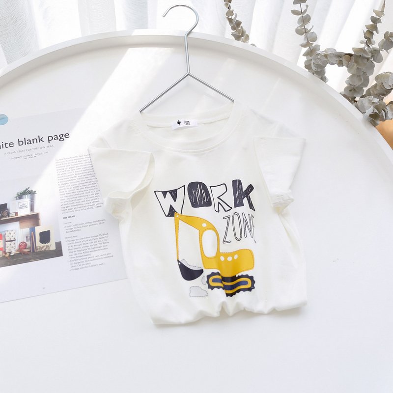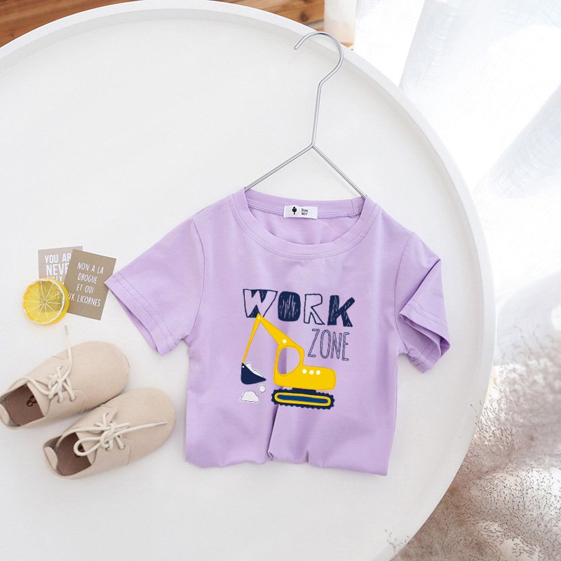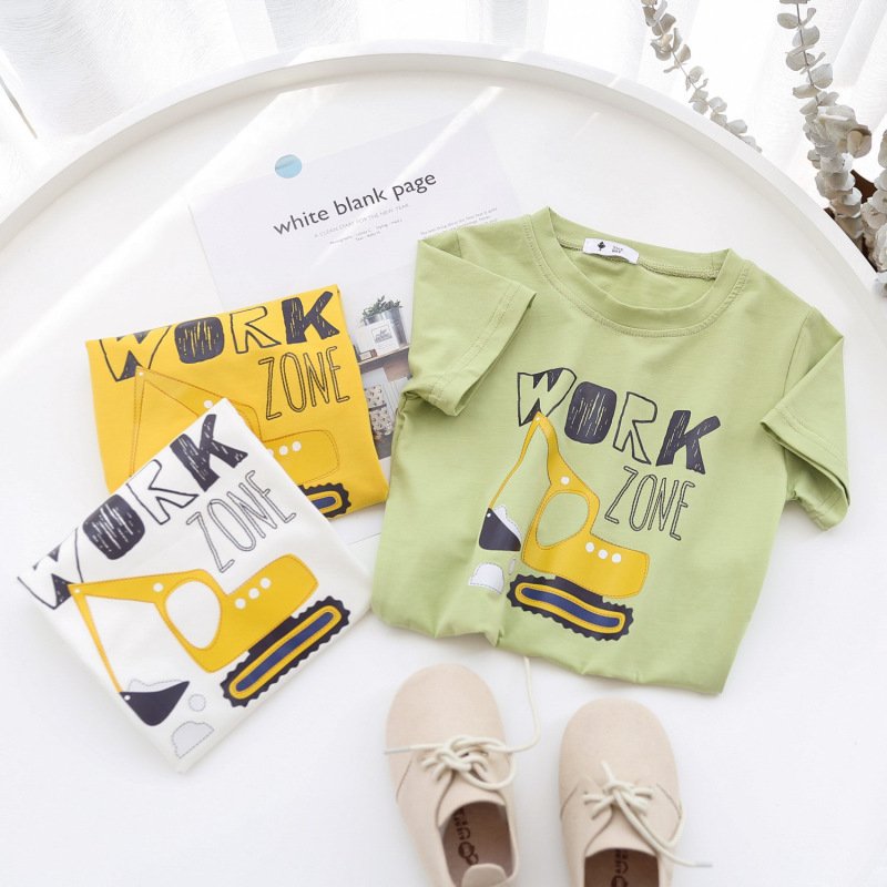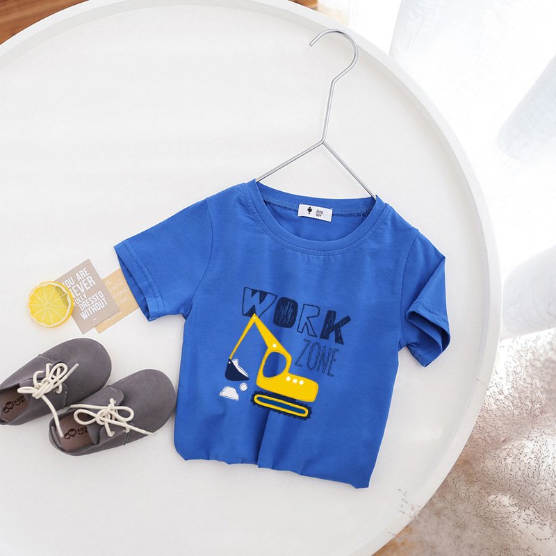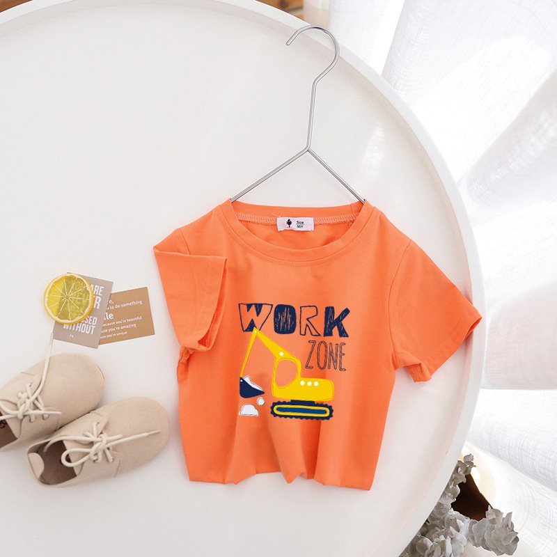 Children Kids Baby Fashion Boys Casual Basic Excavator Print Short Sleeve Round Neck T-Shirt