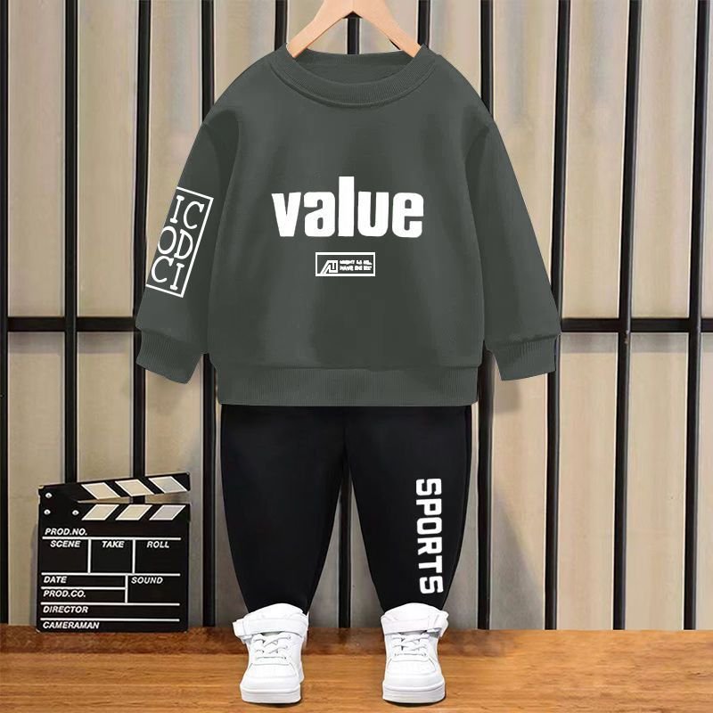 Children Kids Baby Fashion Boys Casual Long Sleeve Letter Print Sweatshirt And Pants 2pcs Set