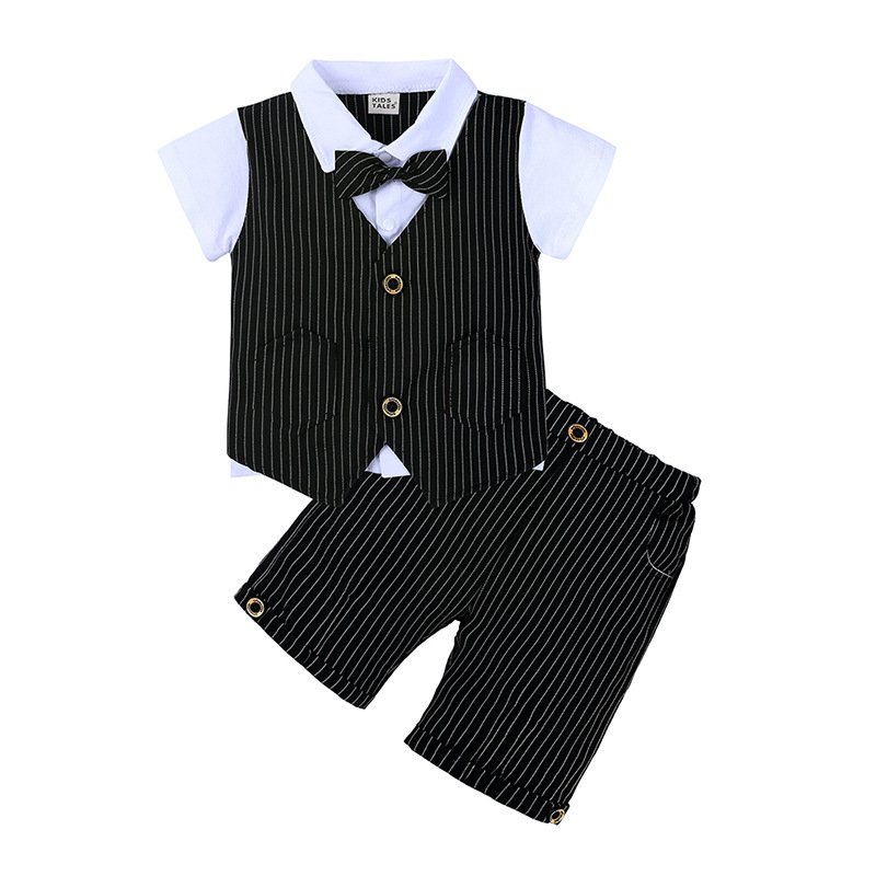 Children Kids Baby Fashion Boys Casual Short Sleeve Bowtie Top And Shorts 2pcs Set