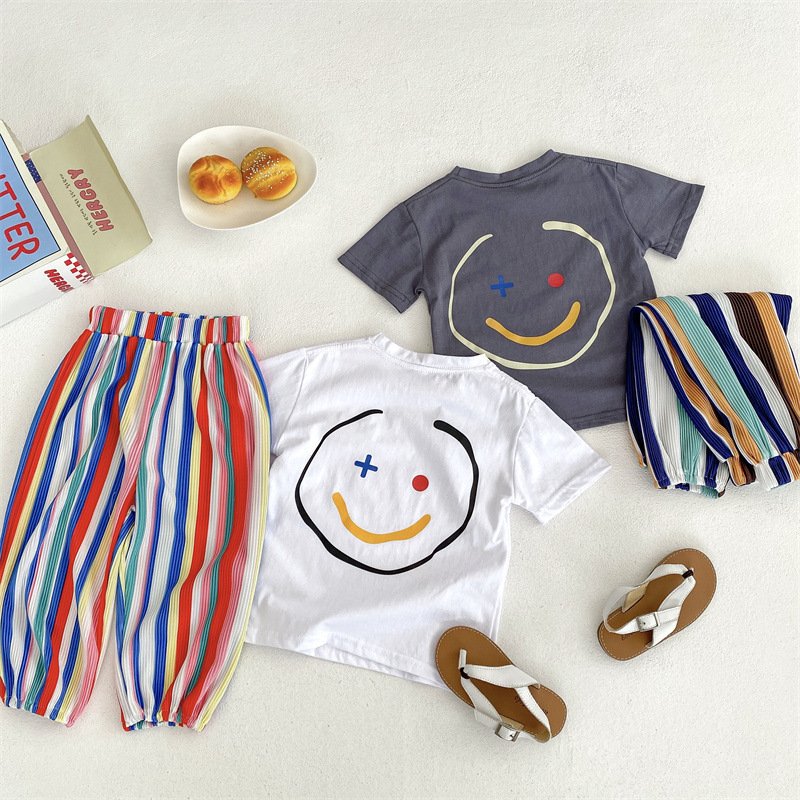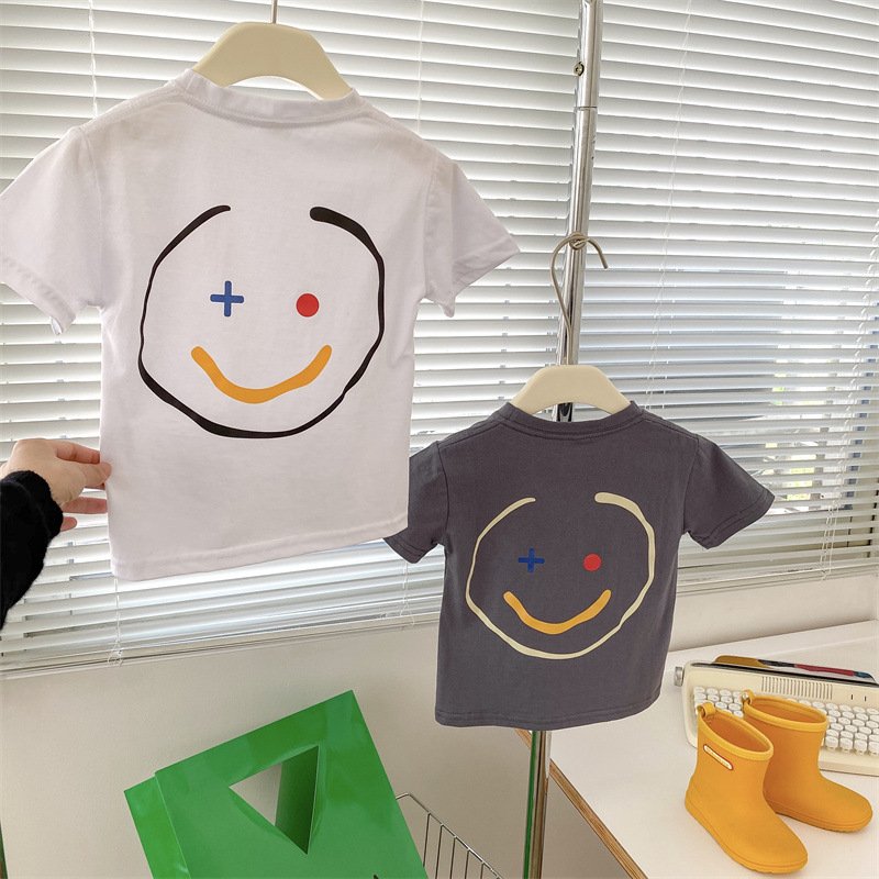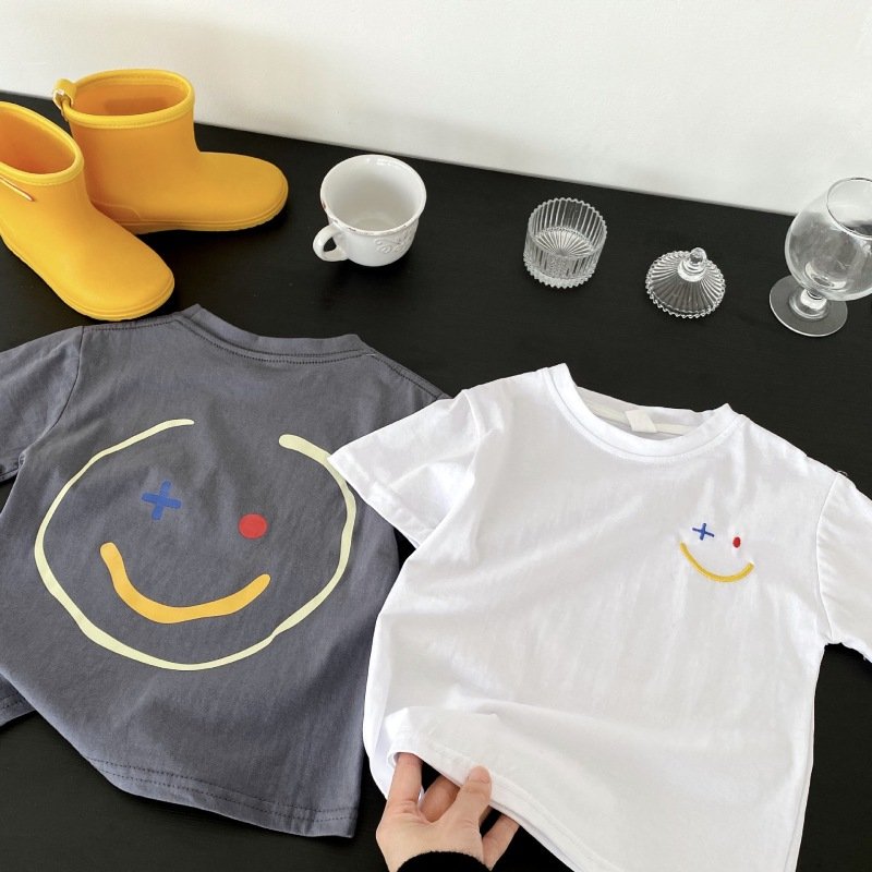 Children Kids Baby Fashion Boys Girls Casual Basic Short Sleeve Cartoon Smiley Letter Print T-Shirt