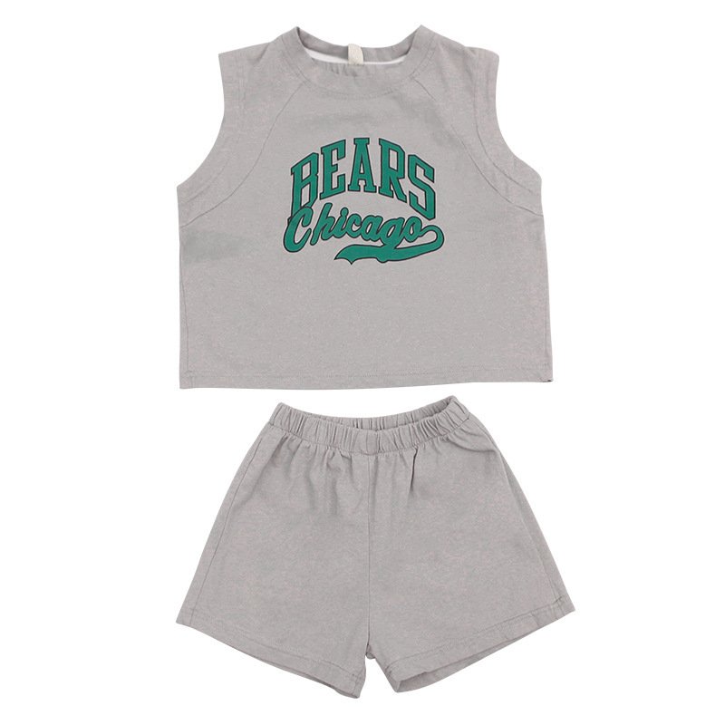 Children Kids Baby Fashion Boys Girls Casual Sleeveless Letter Print Shirt And Shorts 2pcs Set