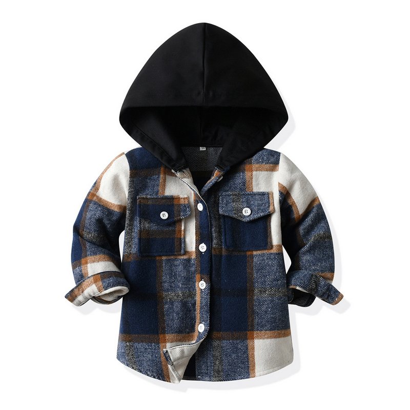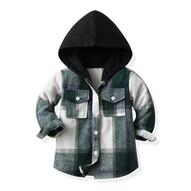 Children Kids Baby Fashion Boys Girls Plaid Hooded Long-Sleeved Jacket