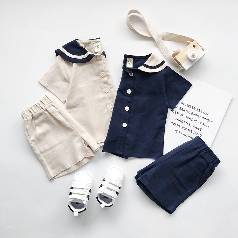 Children Kids Baby Fashion Boys Girls Short Sleeve Peter Pan Collar Shirt And Shorts 2pcs Set