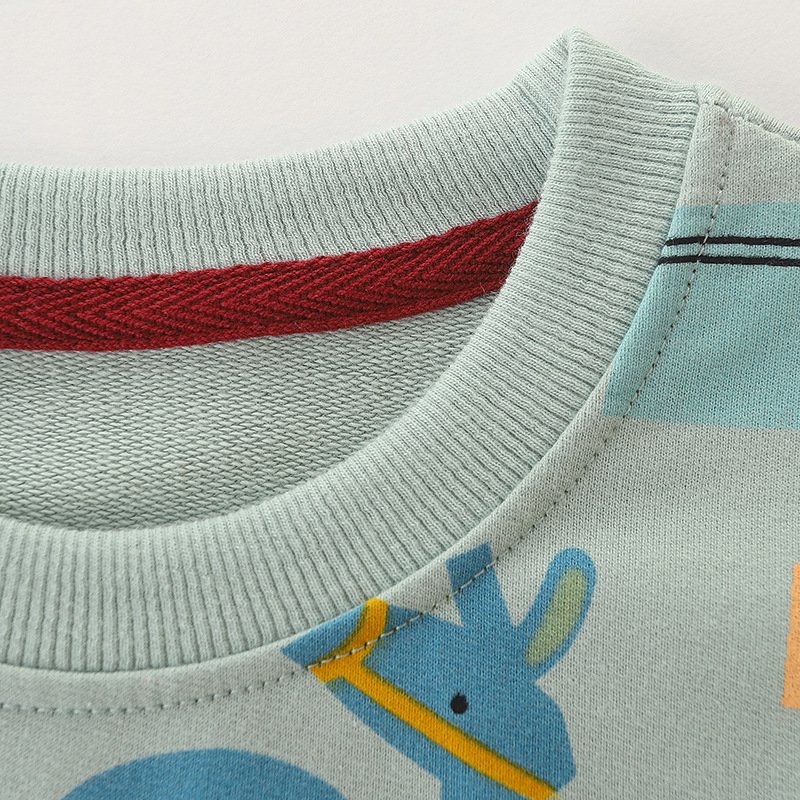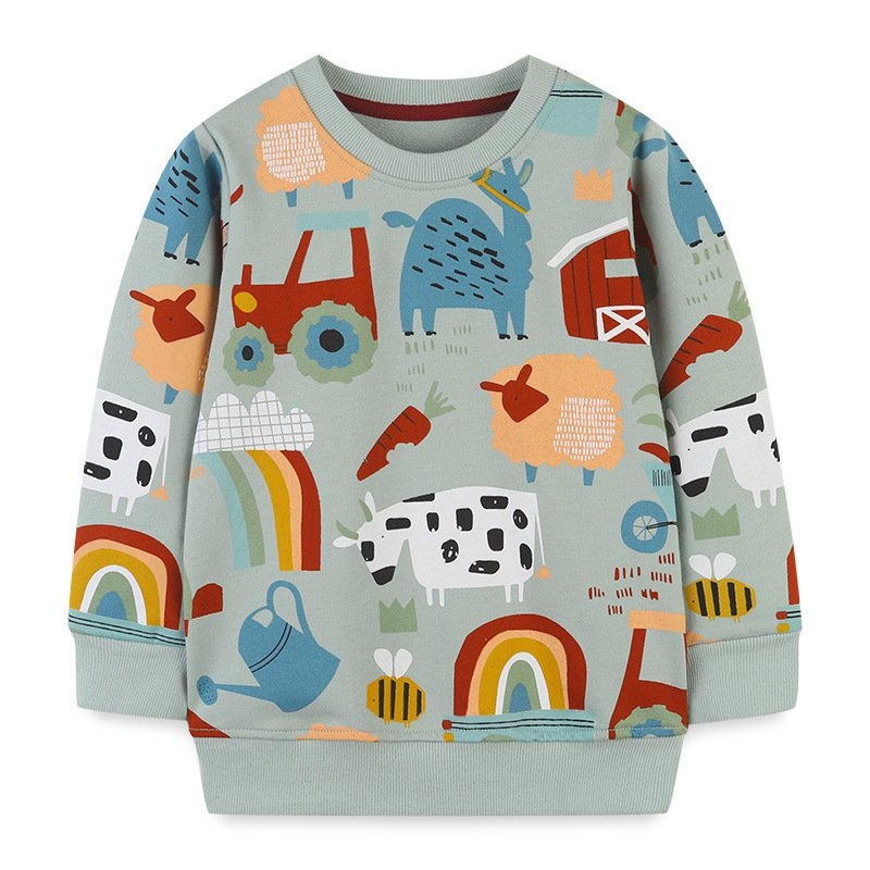 Children Kids Baby Fashion Boys Long Sleeve Cartoon Animal Print Round Neck Pullover Sweatshirt