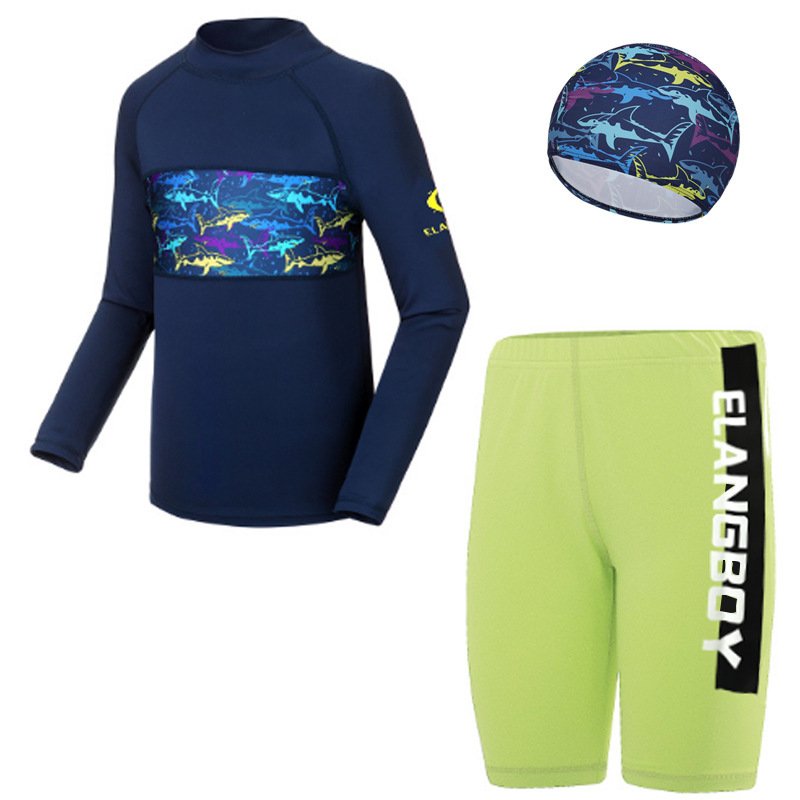 Children Kids Baby Fashion Boys Long Sleeve Quick-Drying Cartoon Shark Print Swimsuit 3pcs Set