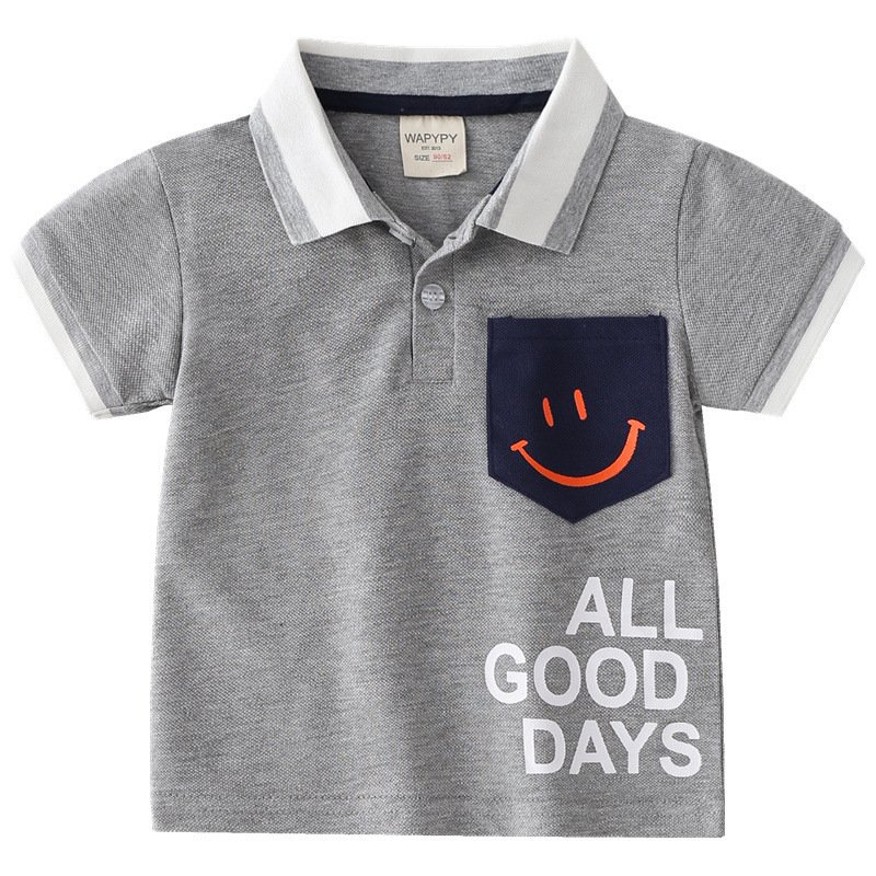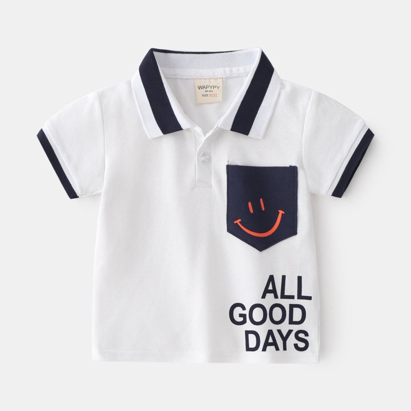 Children Kids Baby Fashion Boys Short Sleeve Cartoon Letter Smile Print Lapel Casual Basic T-Shirt