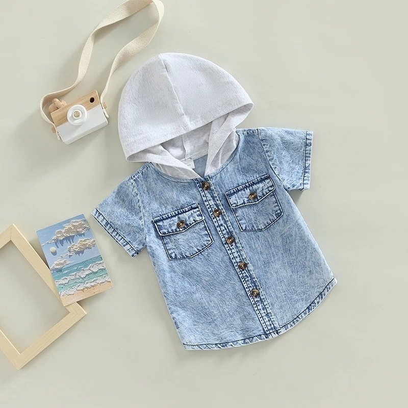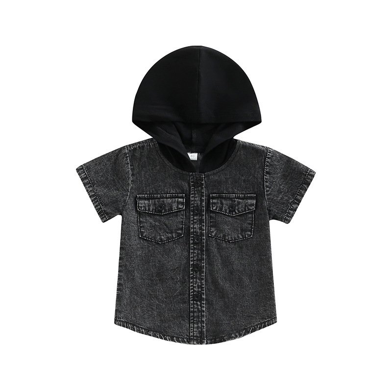 Children Kids Baby Fashion Boys Short Sleeve Hooded Denim Shirt