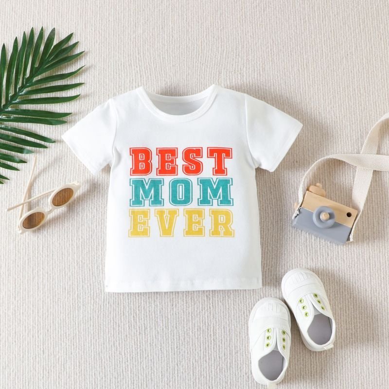 Children Kids Baby Fashion Boys Short Sleeve Letter Mom Print Casual T-Shirt And Shorts 2pcs Set