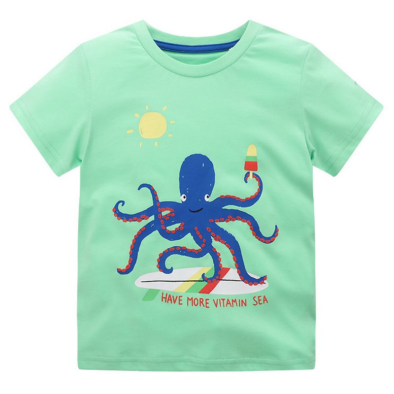 Children Kids Baby Fashion Boys Short Sleeve Round Neck Cartoon Animal Print T-Shirt