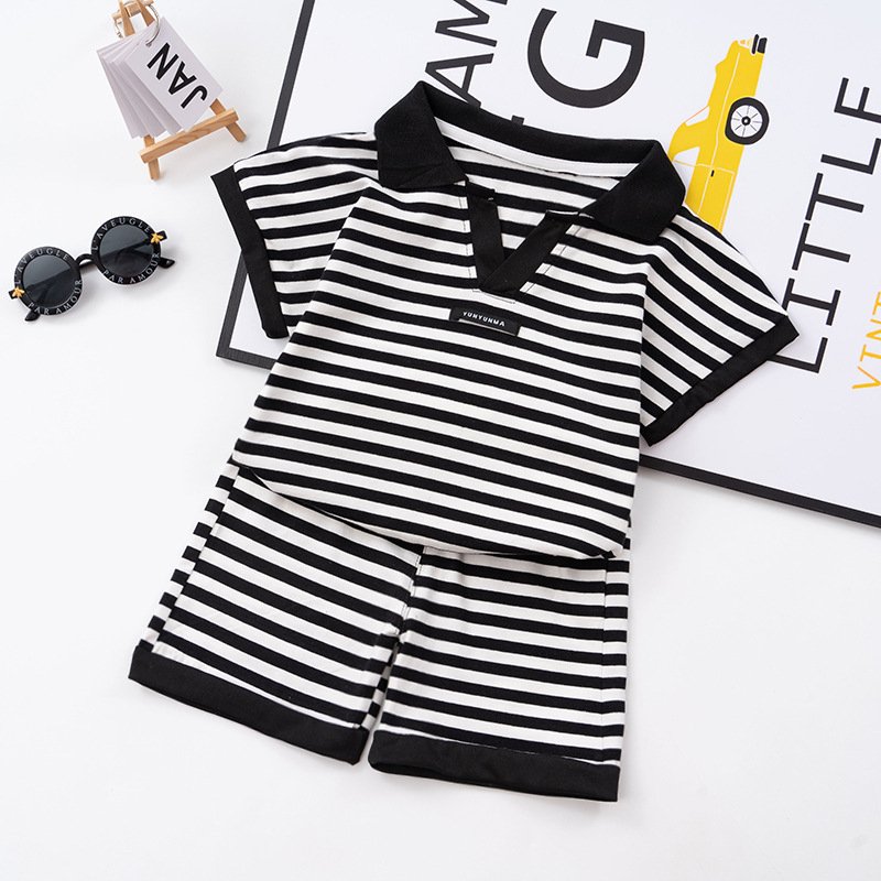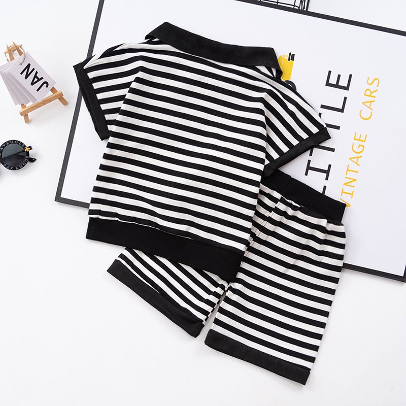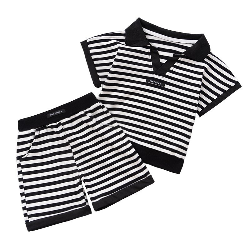 Children Kids Baby Fashion Boys Short Sleeve Stripe Print Polo T-Shirt And Shorts 2pcs Set