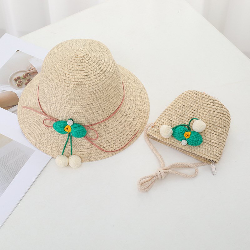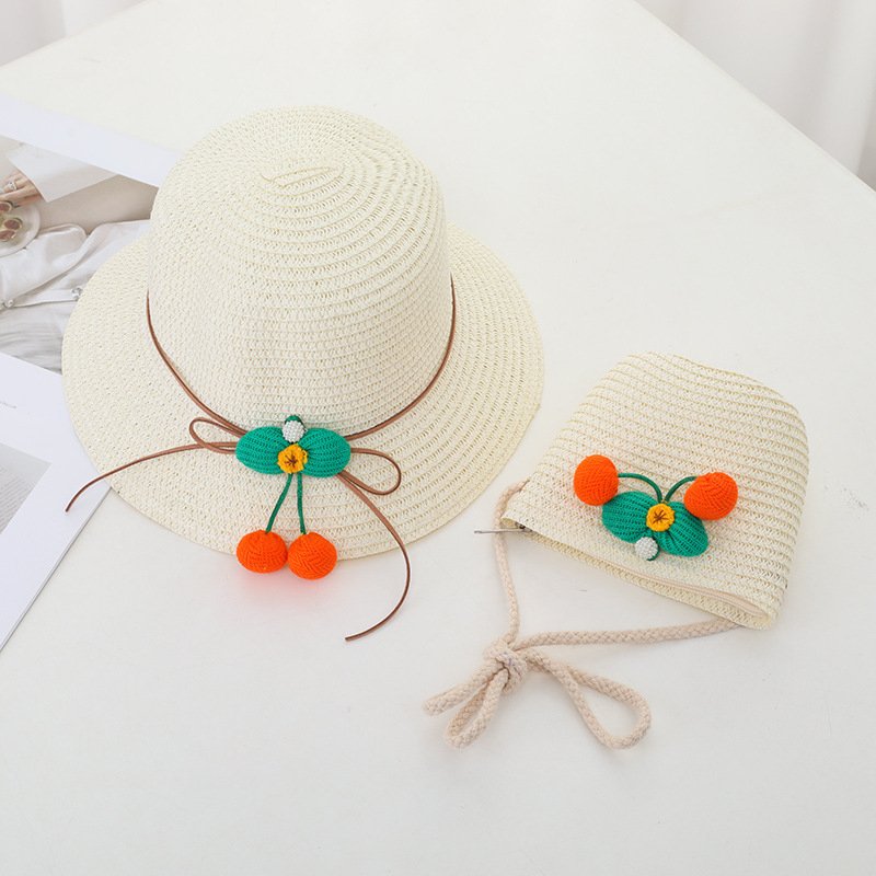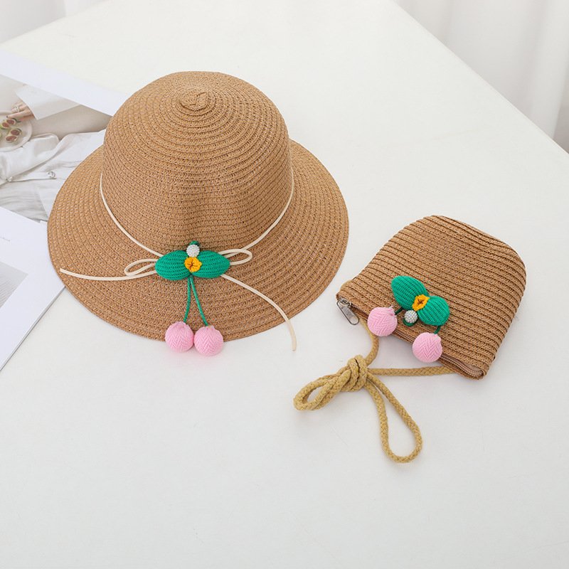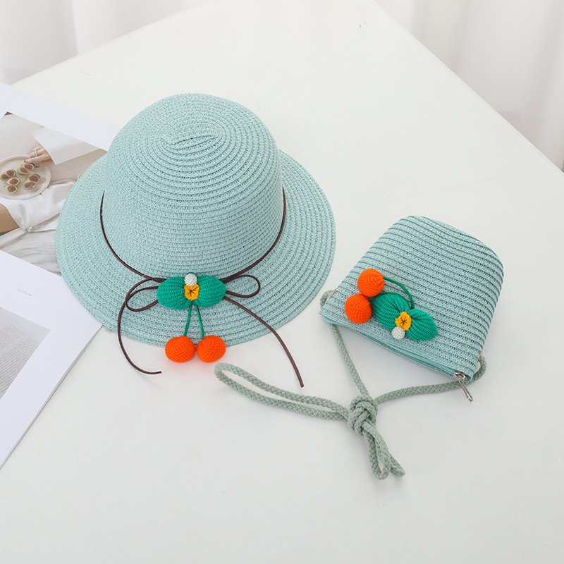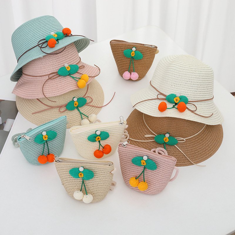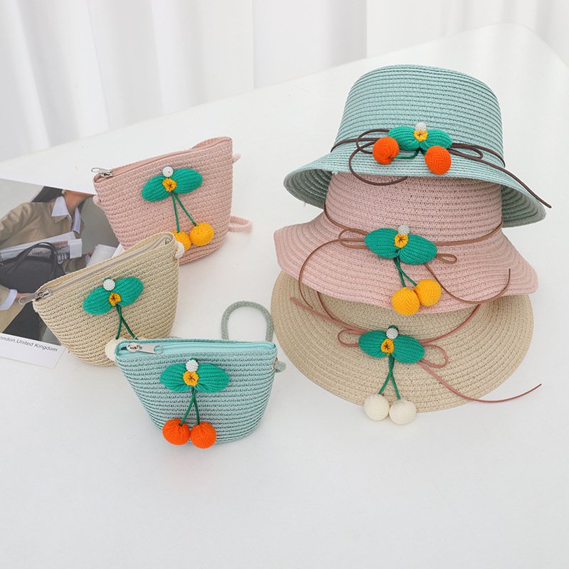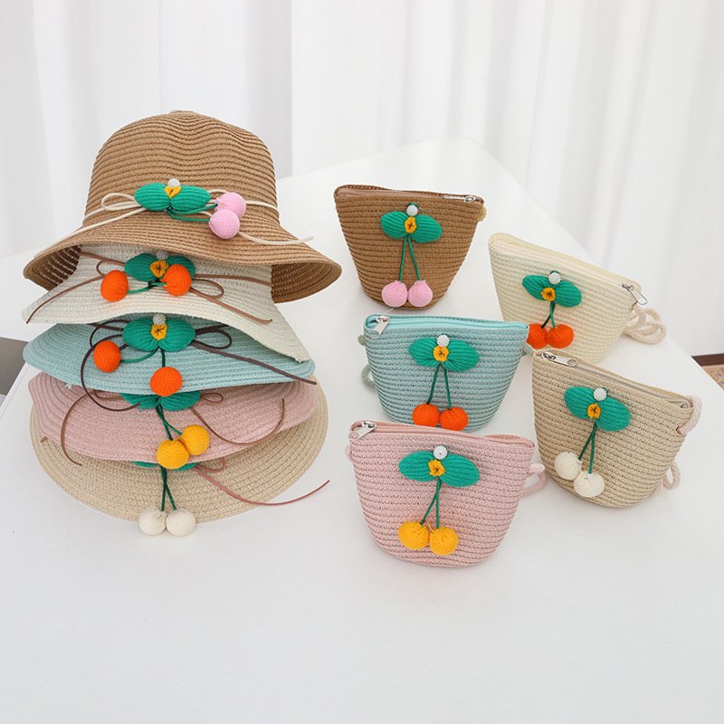 Children Kids Baby Fashion Cherry Straw Hat Crossbody Bag