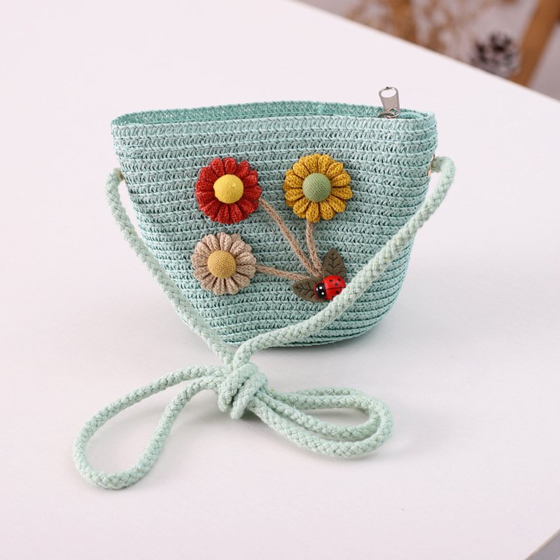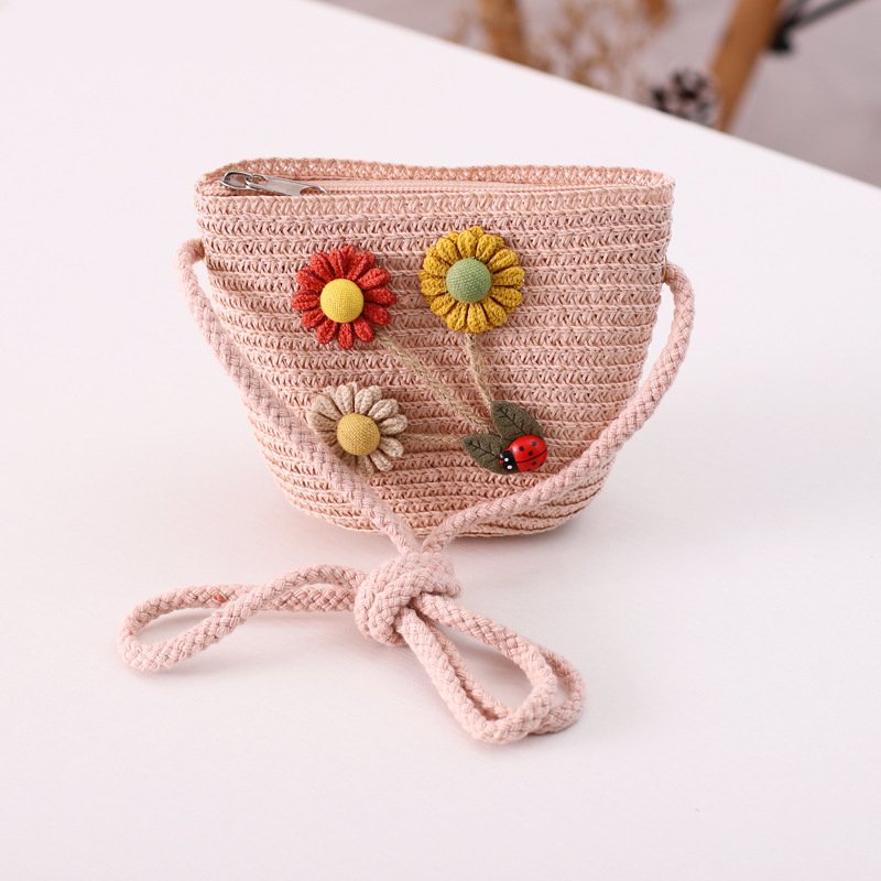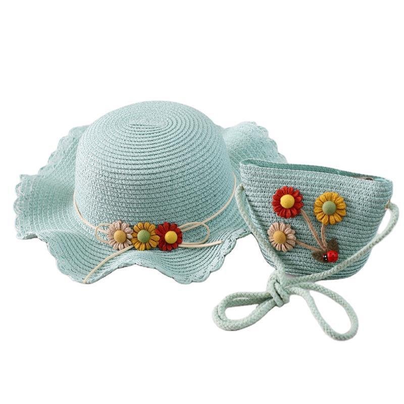 Children Kids Baby Fashion Flower Straw Hat Crossbody Bag