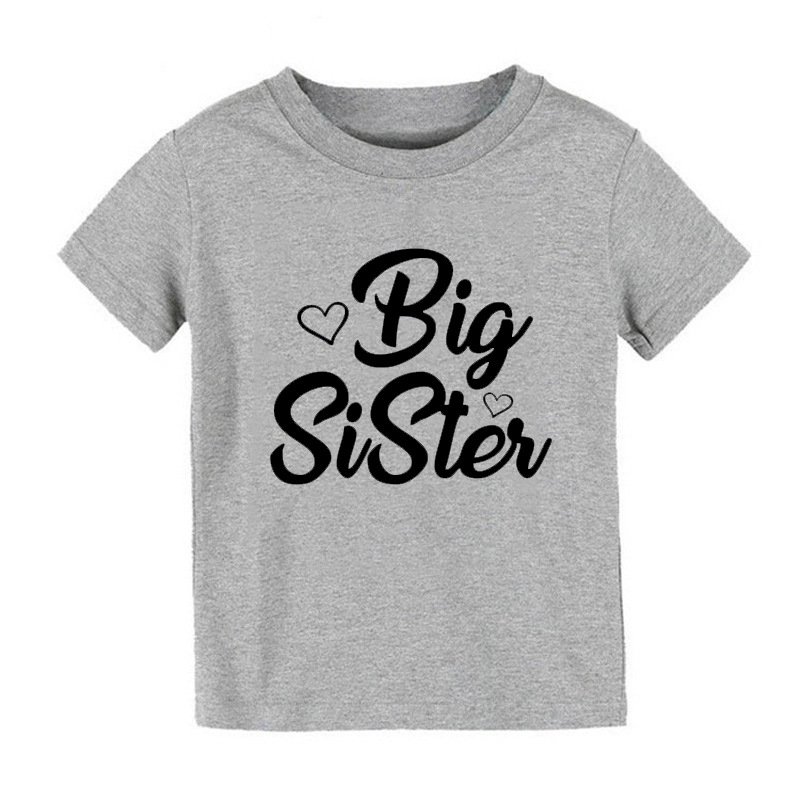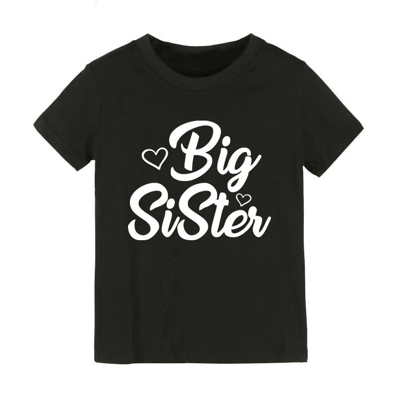 Children Kids Baby Fashion Girls Basic Casual Big Little Sister Print Short Sleeve T-Shirt