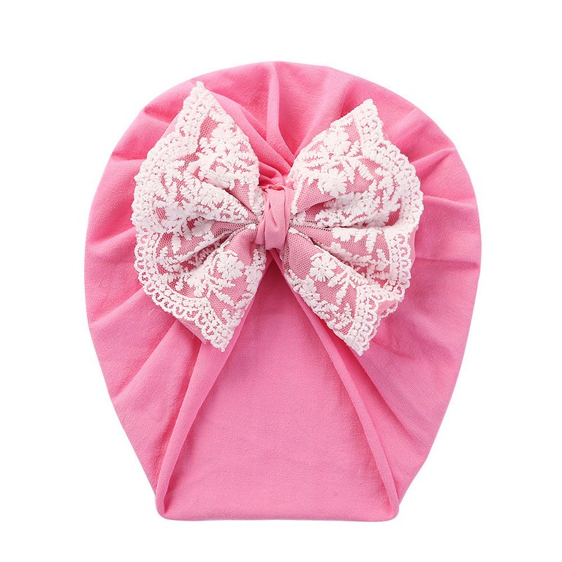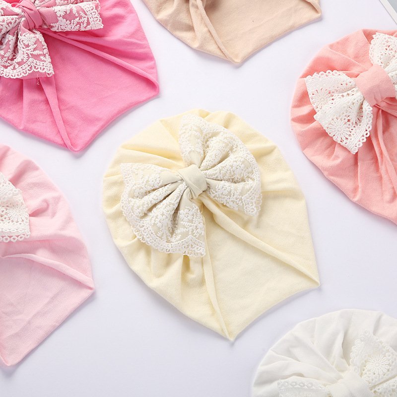 Children Kids Baby Fashion Girls Bowknot Candy Color Turban Beanie Cap