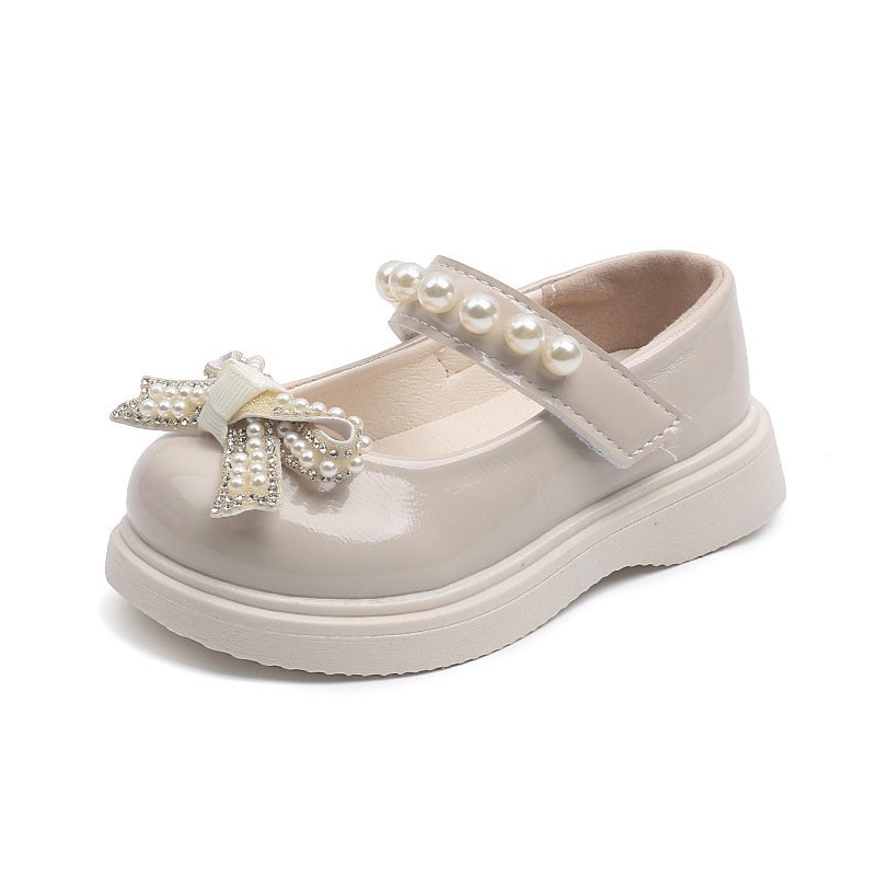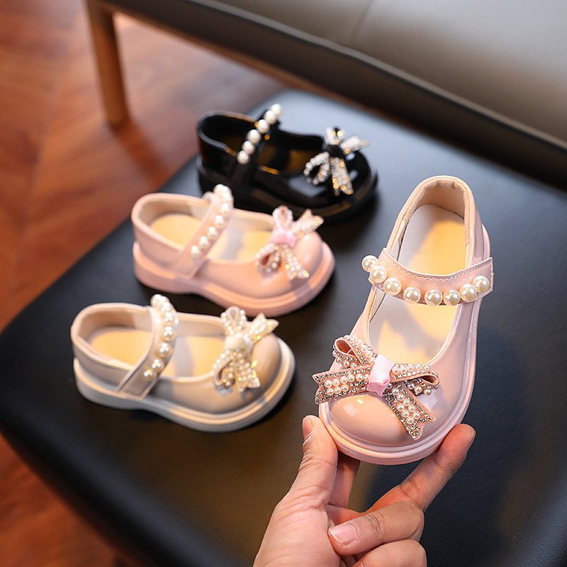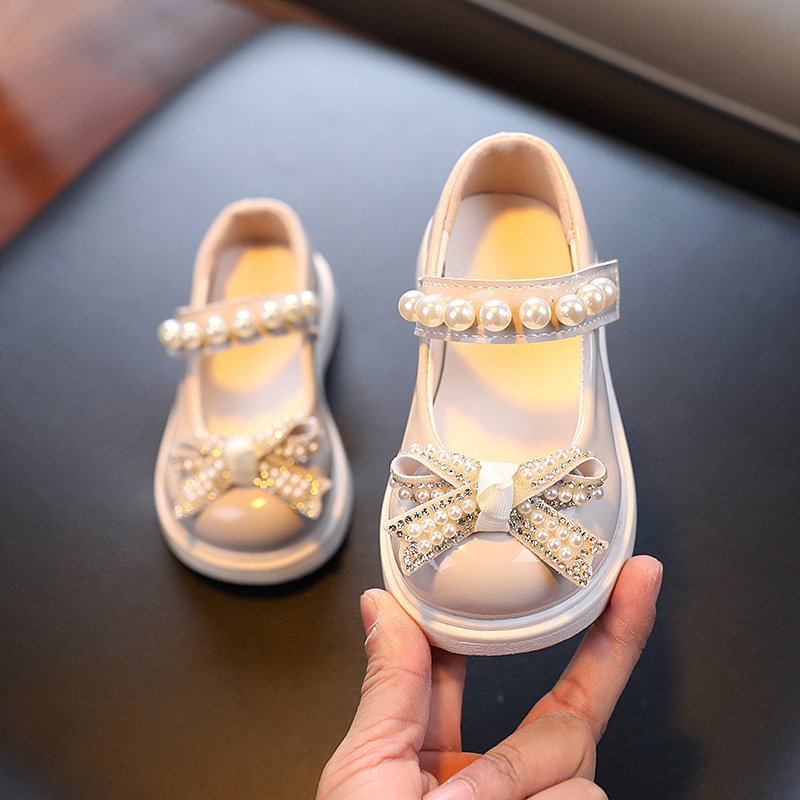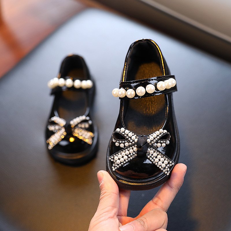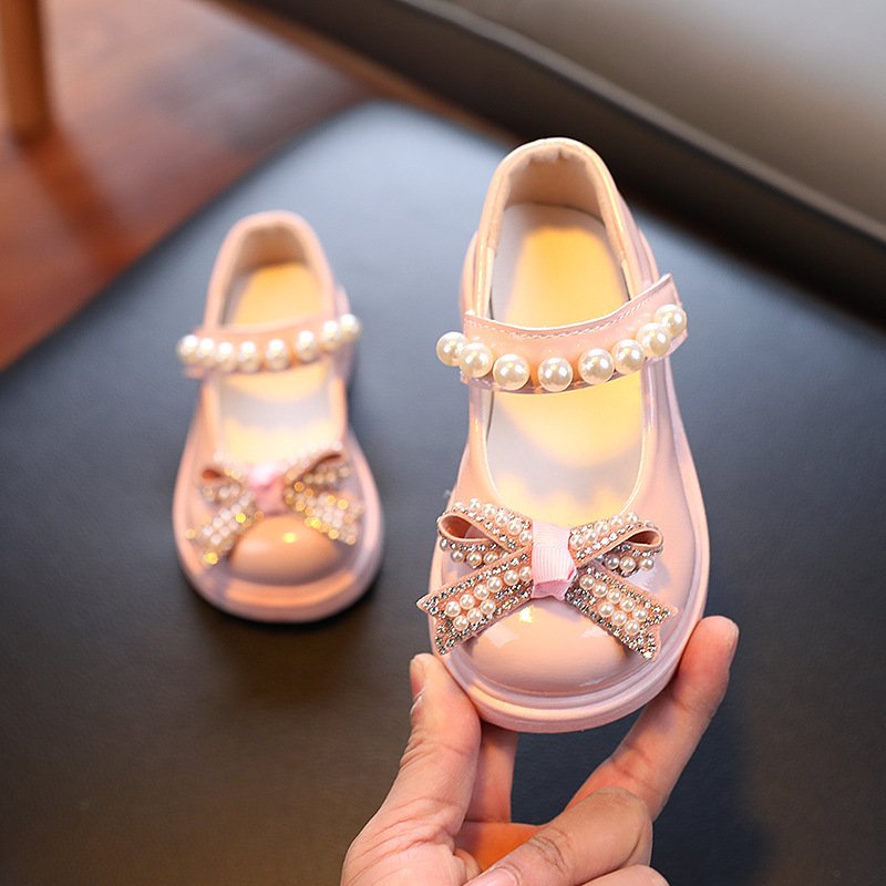 Children Kids Baby Fashion Girls Bowknot Pearl Princess Pu Leather Shoes