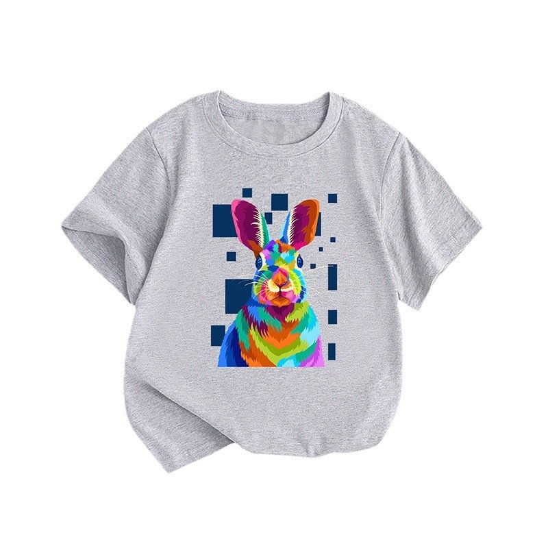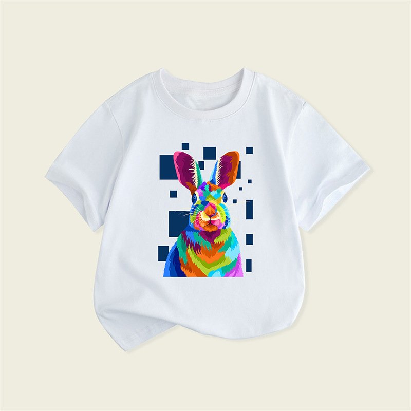 Children Kids Baby Fashion Girls Boys Casual Basic Cartoon Bunny Print Short Sleeve T-Shirt