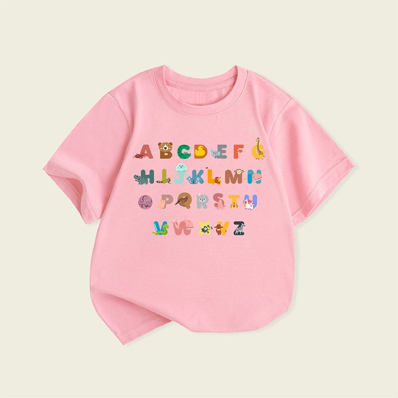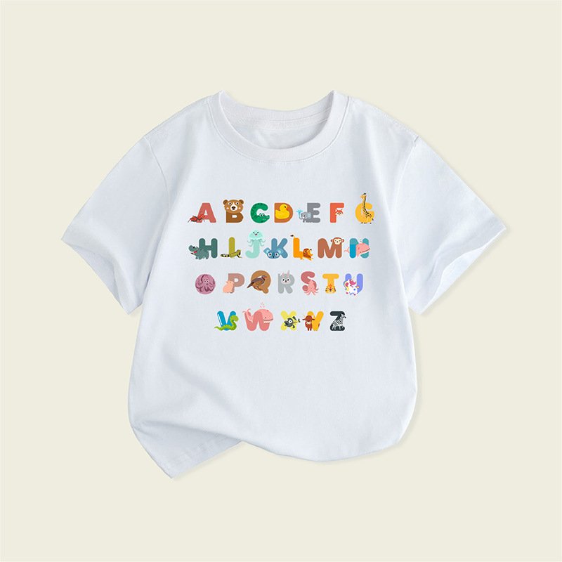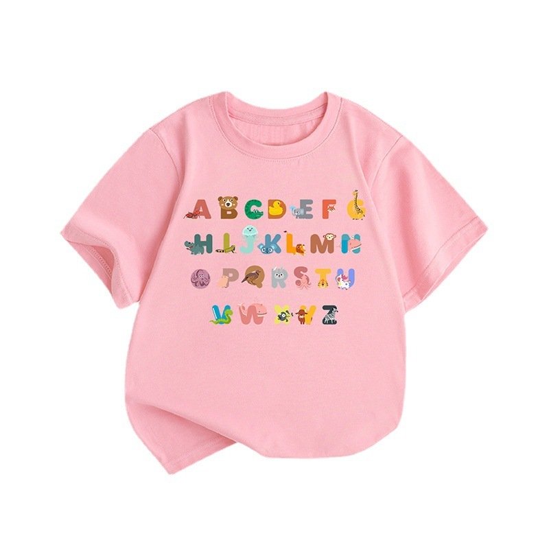 Children Kids Baby Fashion Girls Boys Casual Basic Cartoon Letter Print Short Sleeve T-Shirt