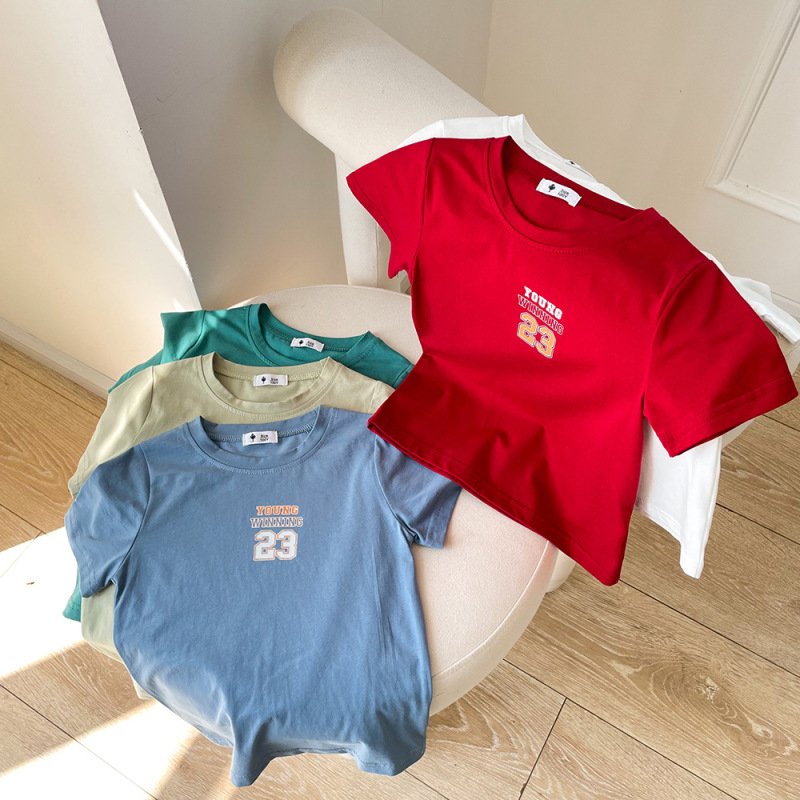 Children Kids Baby Fashion Girls Boys Casual Basic Letter Print Short Sleeve Round Neck T-Shirt