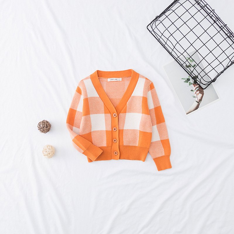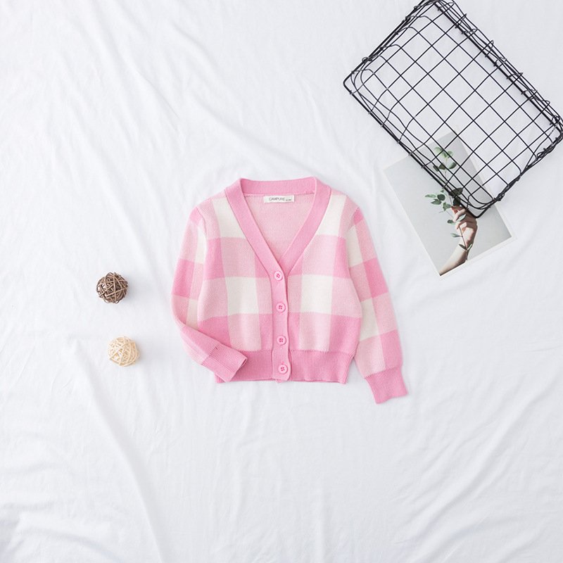 Children Kids Baby Fashion Girls Boys Casual Basic Long Sleeve Plaid Knitted Cardigan Coat