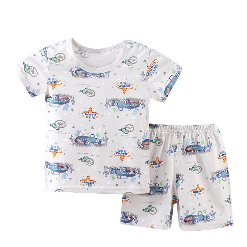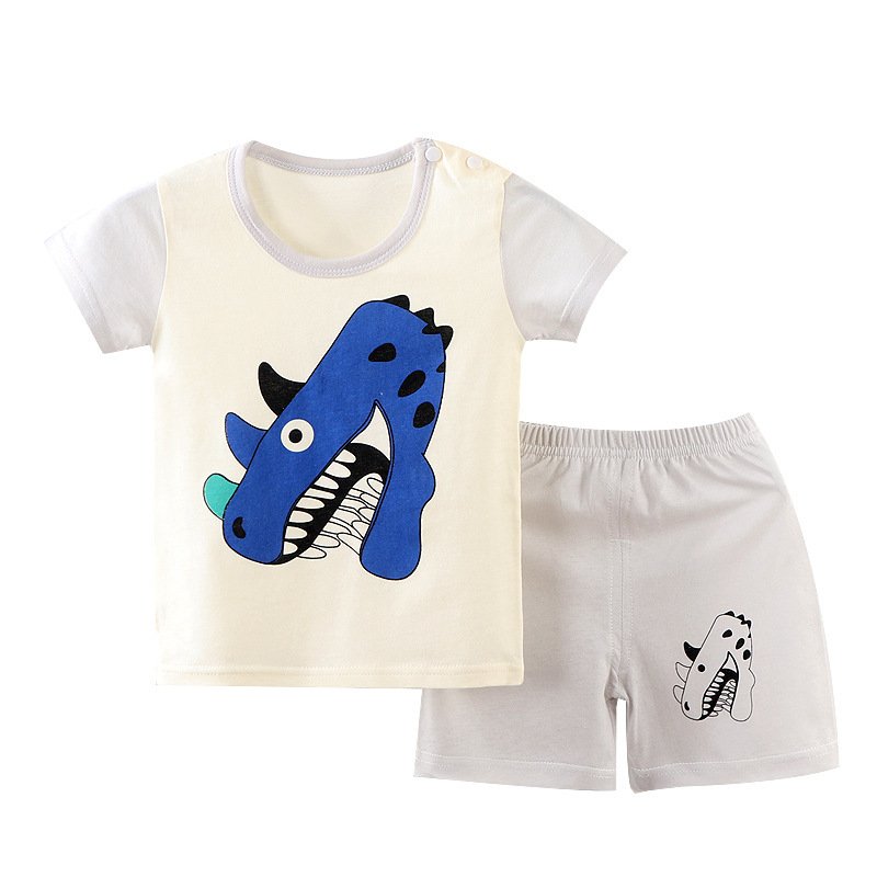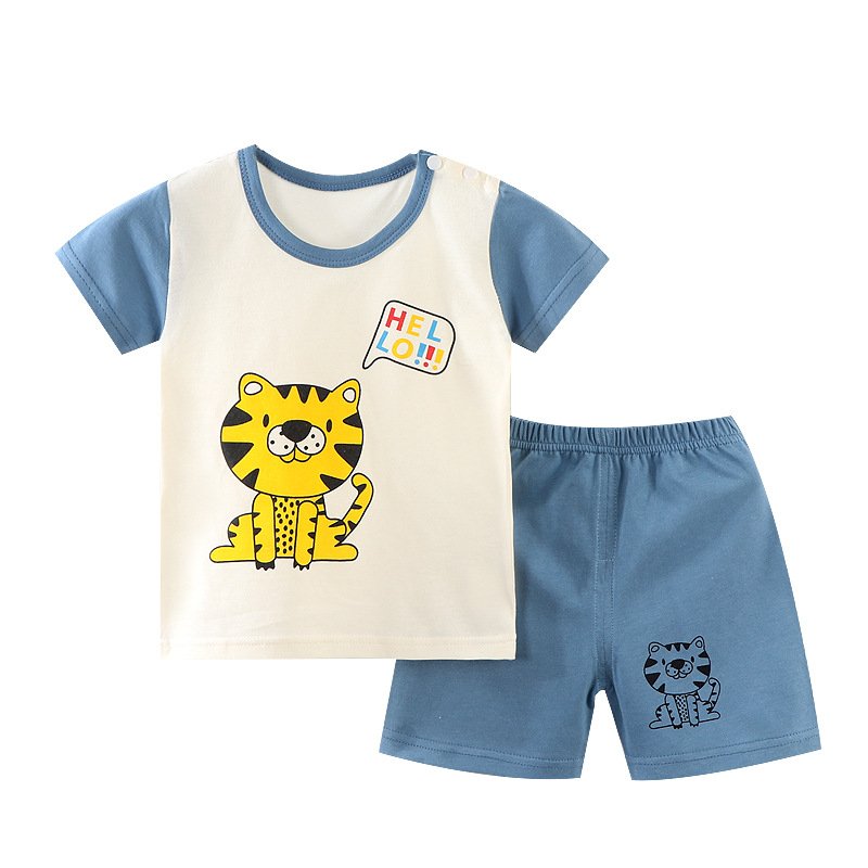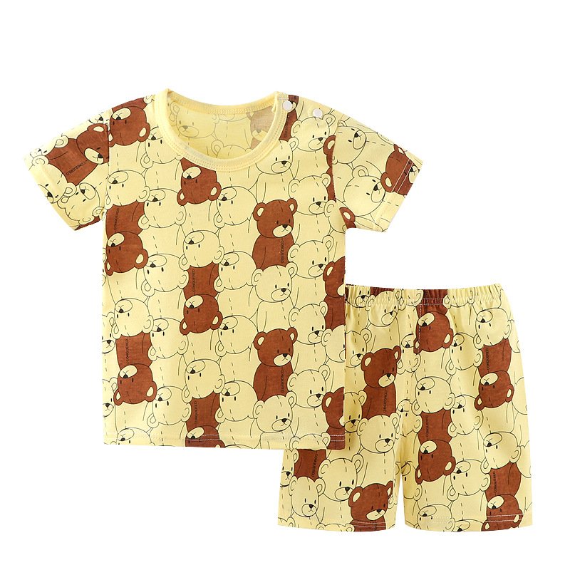 Children Kids Baby Fashion Girls Boys Casual Basic Short Sleeve Cartoon Print T-Shirt And Shorts 2pcs Set