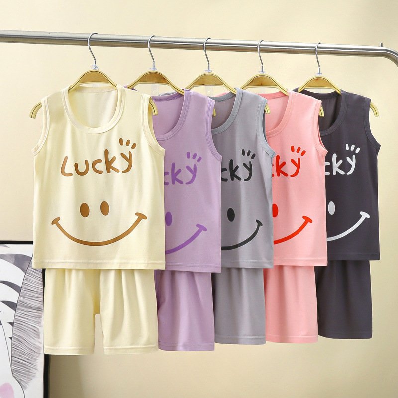 Children Kids Baby Fashion Girls Boys Casual Basic Sleeveless Modal T-Shirt And Shorts Sports 2pcs Set