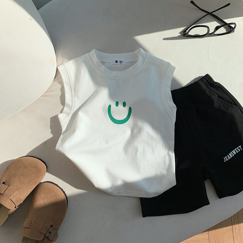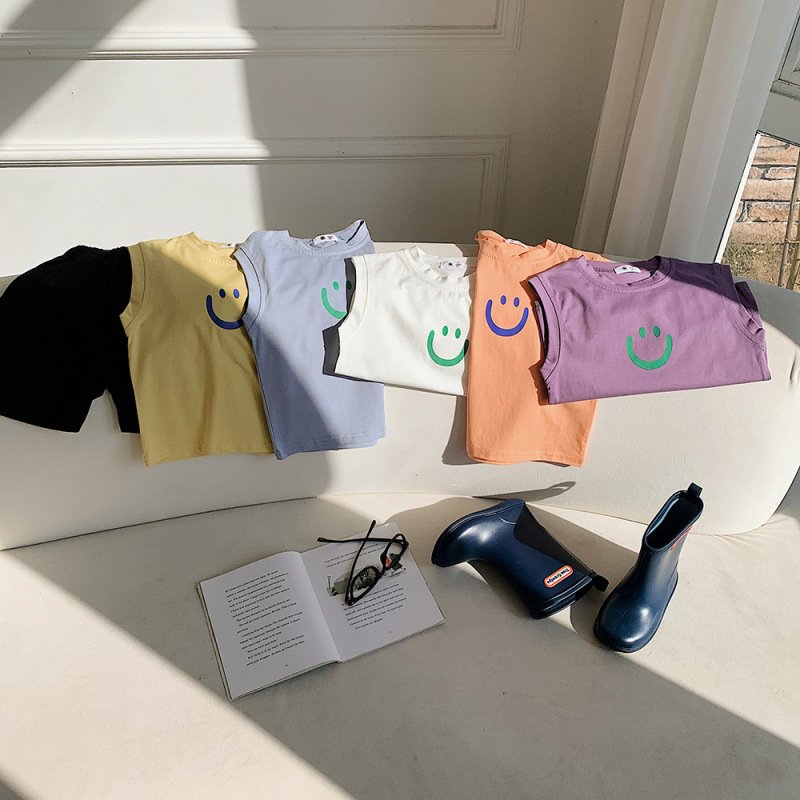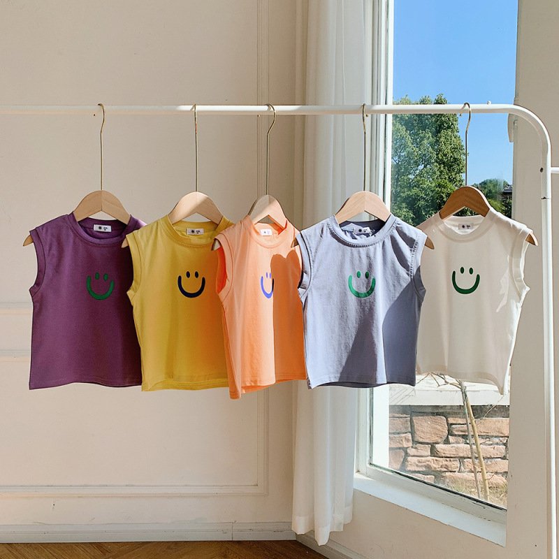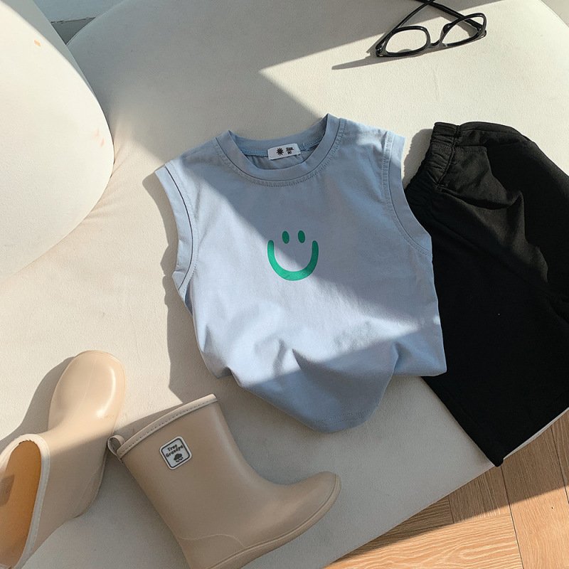 Children Kids Baby Fashion Girls Boys Casual Basic Sleeveless Smiley Print T-Shirt