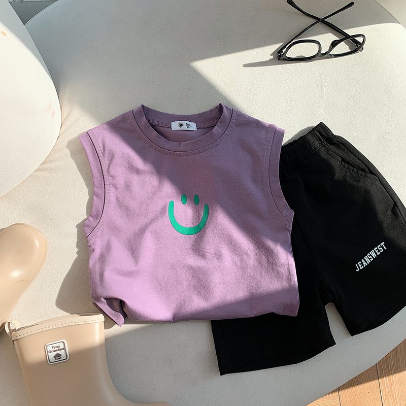 Children Kids Baby Fashion Girls Boys Casual Basic Sleeveless Smiley Print T-Shirt