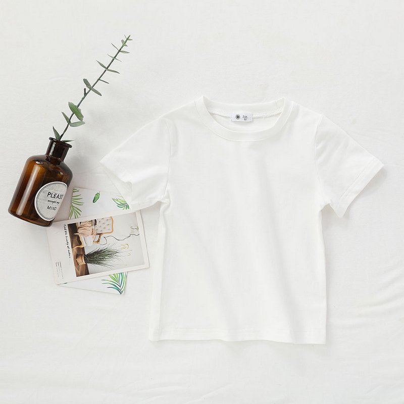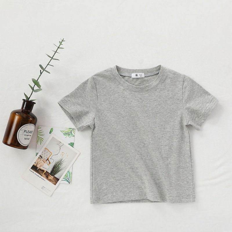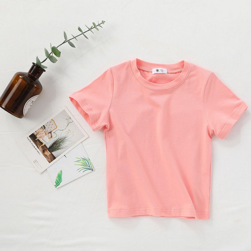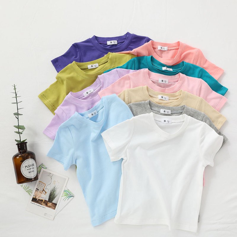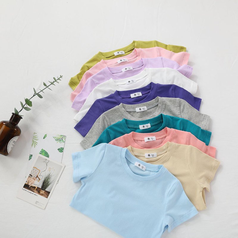 Children Kids Baby Fashion Girls Boys Casual Basic Solid Color Short Sleeve Round Neck T-Shirt