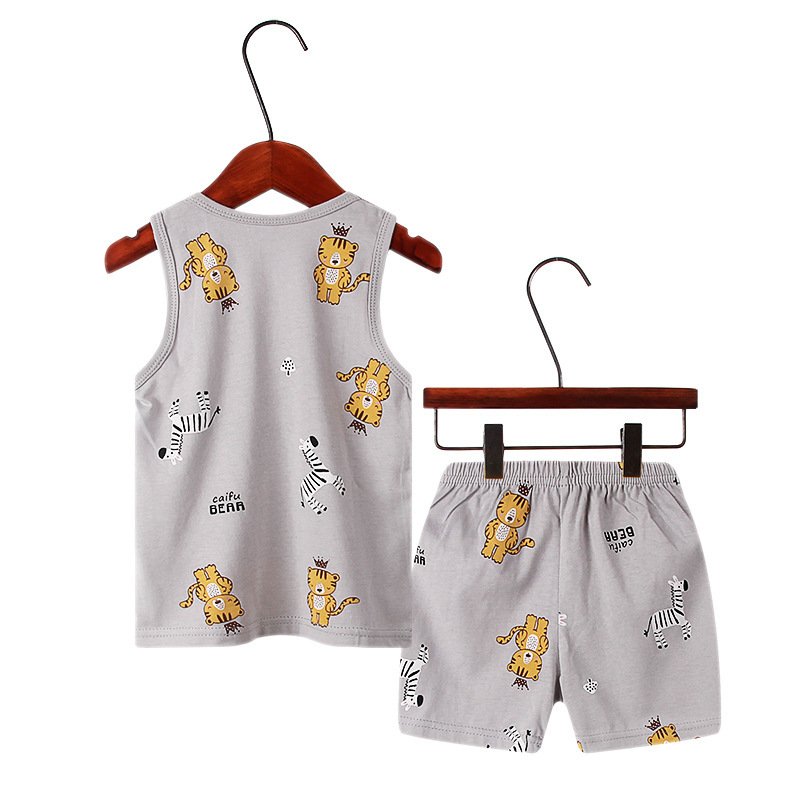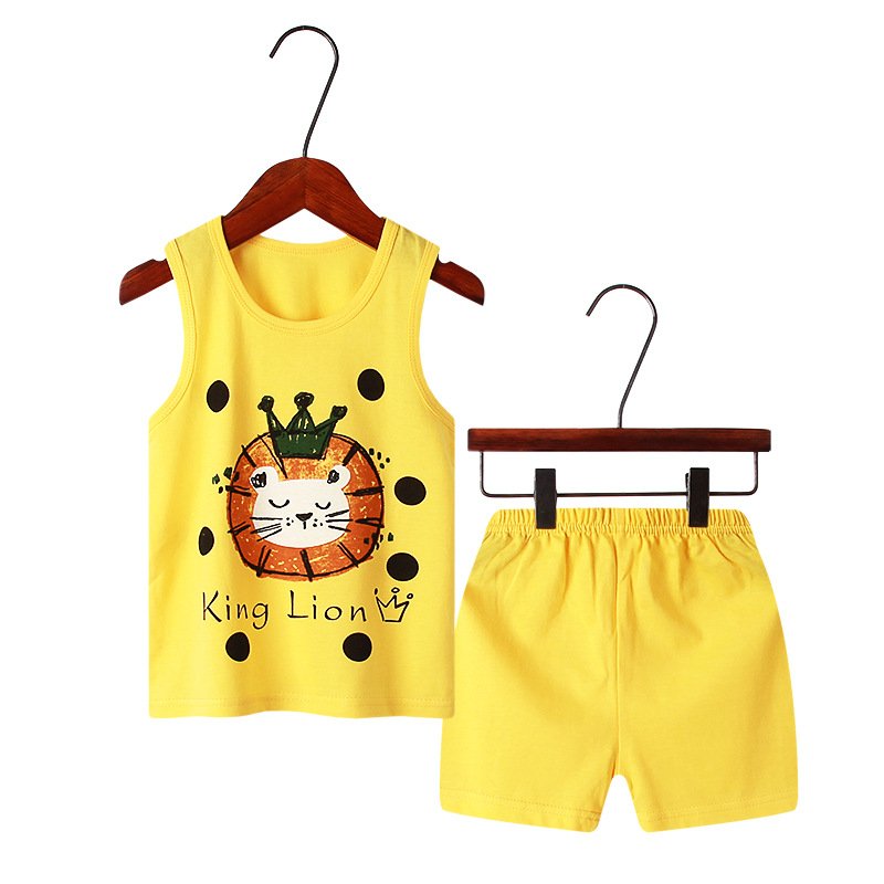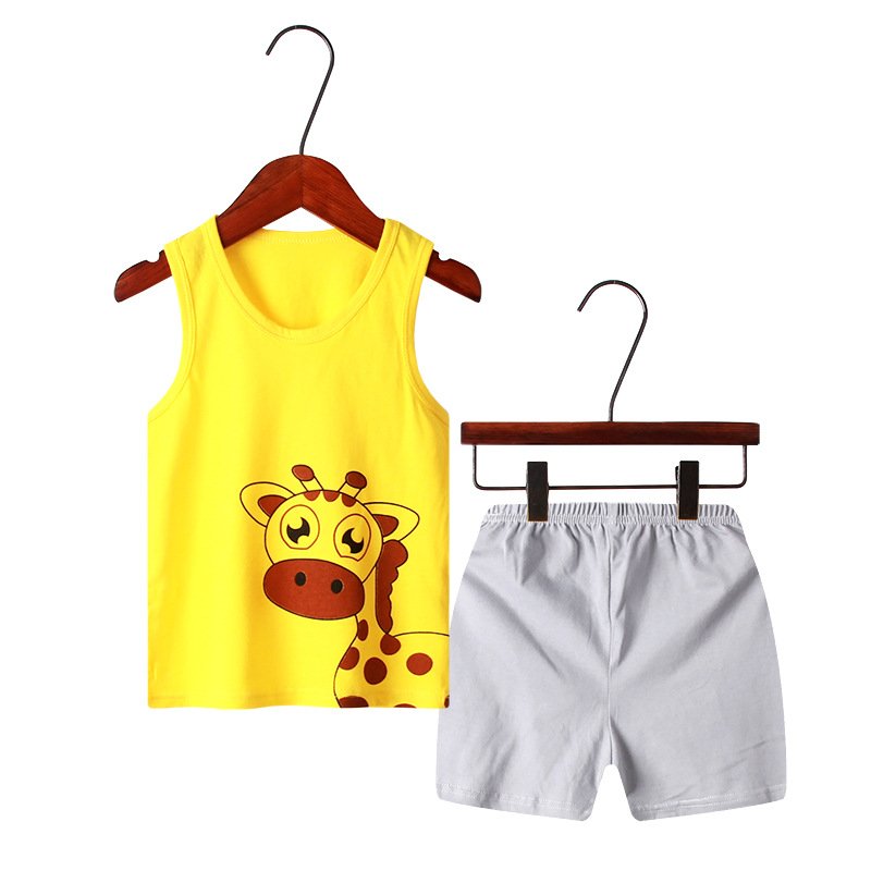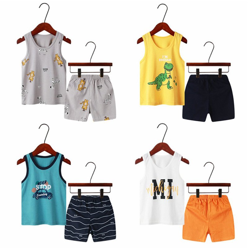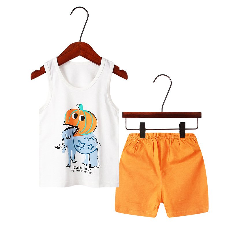 Children Kids Baby Fashion Girls Boys Casual Basics Sleeveless Cartoon Print Top And Shorts 2pcs Set