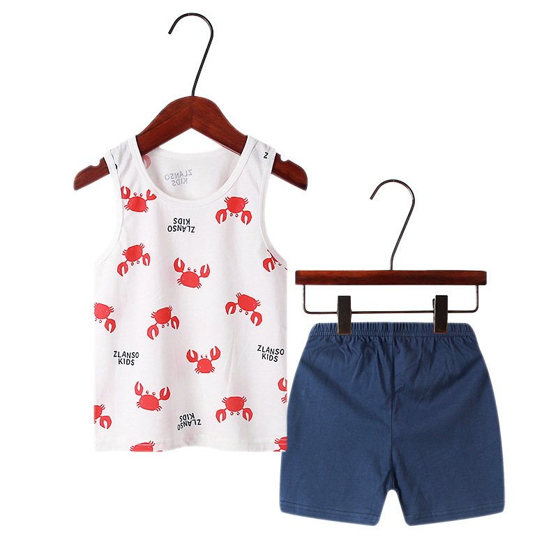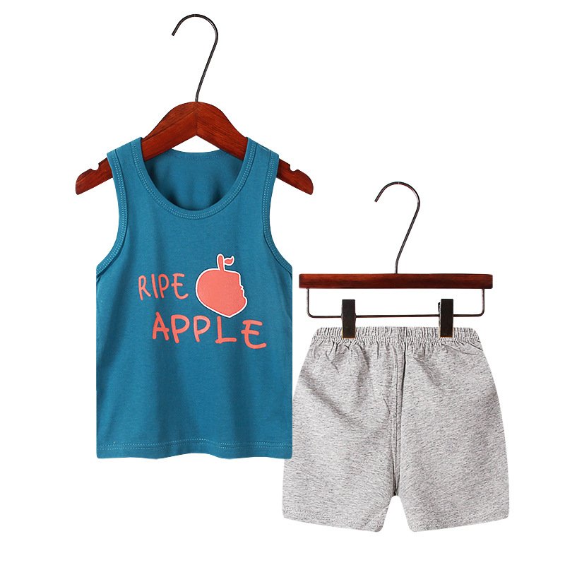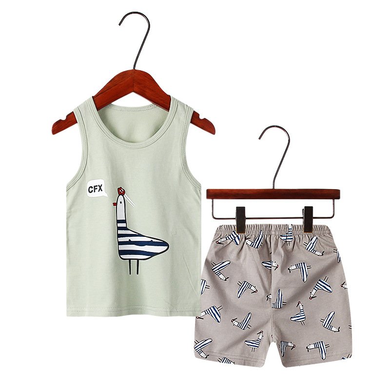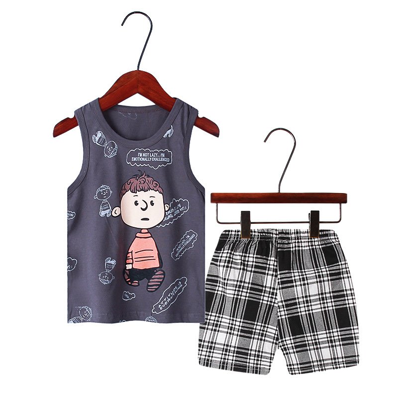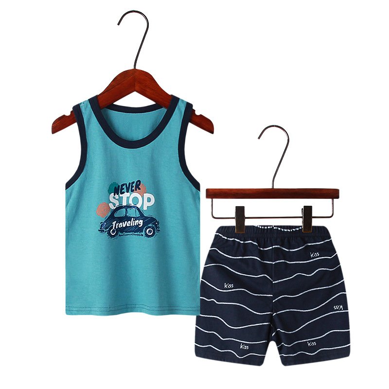 Children Kids Baby Fashion Girls Boys Casual Basics Sleeveless Cartoon Print Top And Shorts 2pcs Set