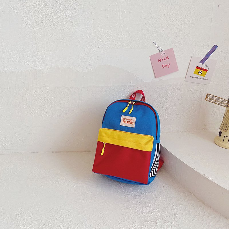 Children Kids Baby Fashion Girls Boys Color Matching Canvas Backpack School Bag